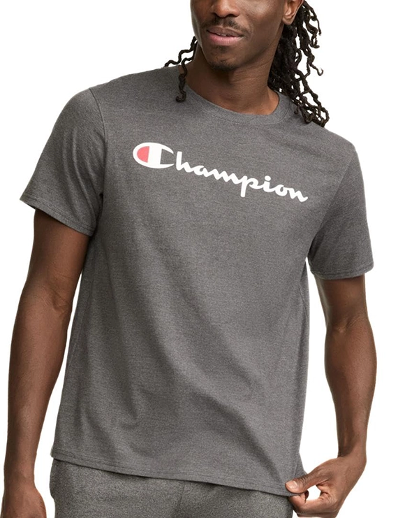 Champion Men’s Heritage Short Sleeve Tee, Men’s T-Shirts, Vintage Shirts, Men’s Tee Shirts, Graphics(Granite Heather – Classic Script Logo)