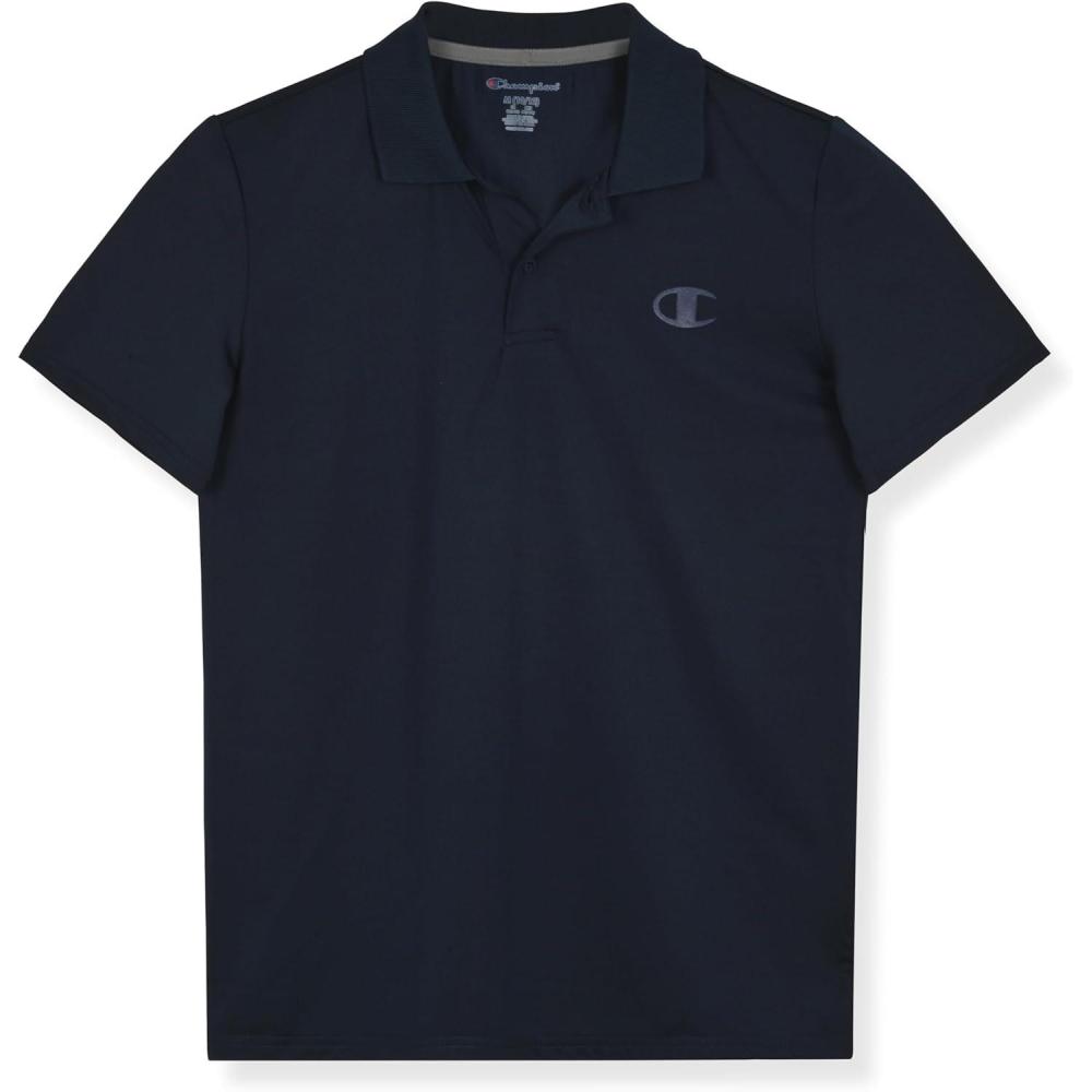 Champion Boys’ Athletic Short Sleeve Polo Shirt with Moisture Wicking Stretch Fabric(Dark Navy)