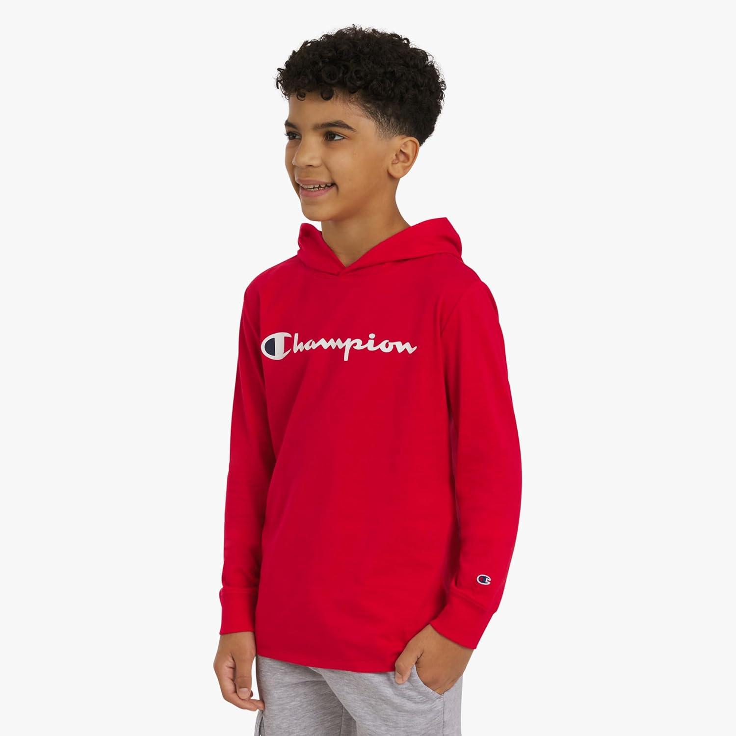 Champion boys Boys Long Sleeve Hooded Shirt(Lychee Red)