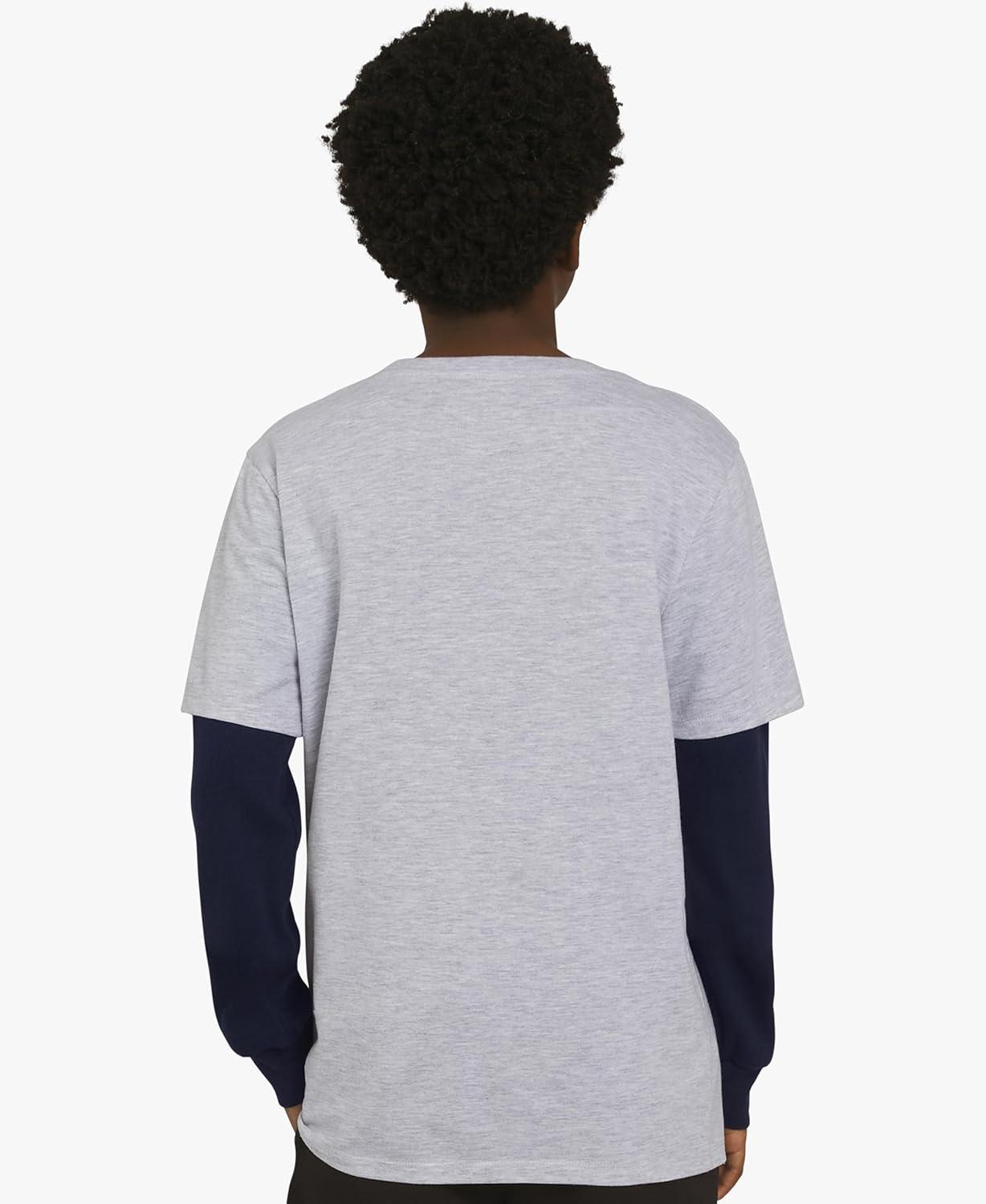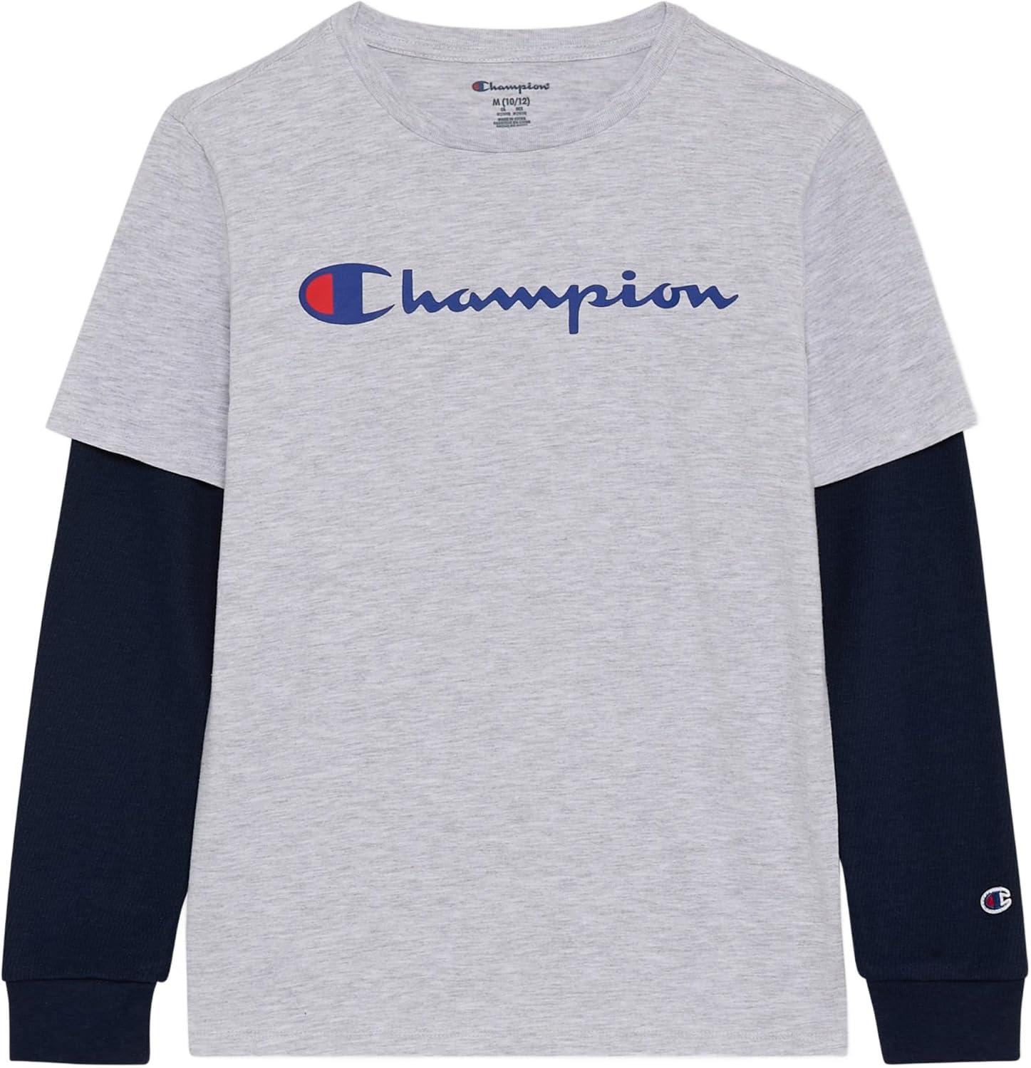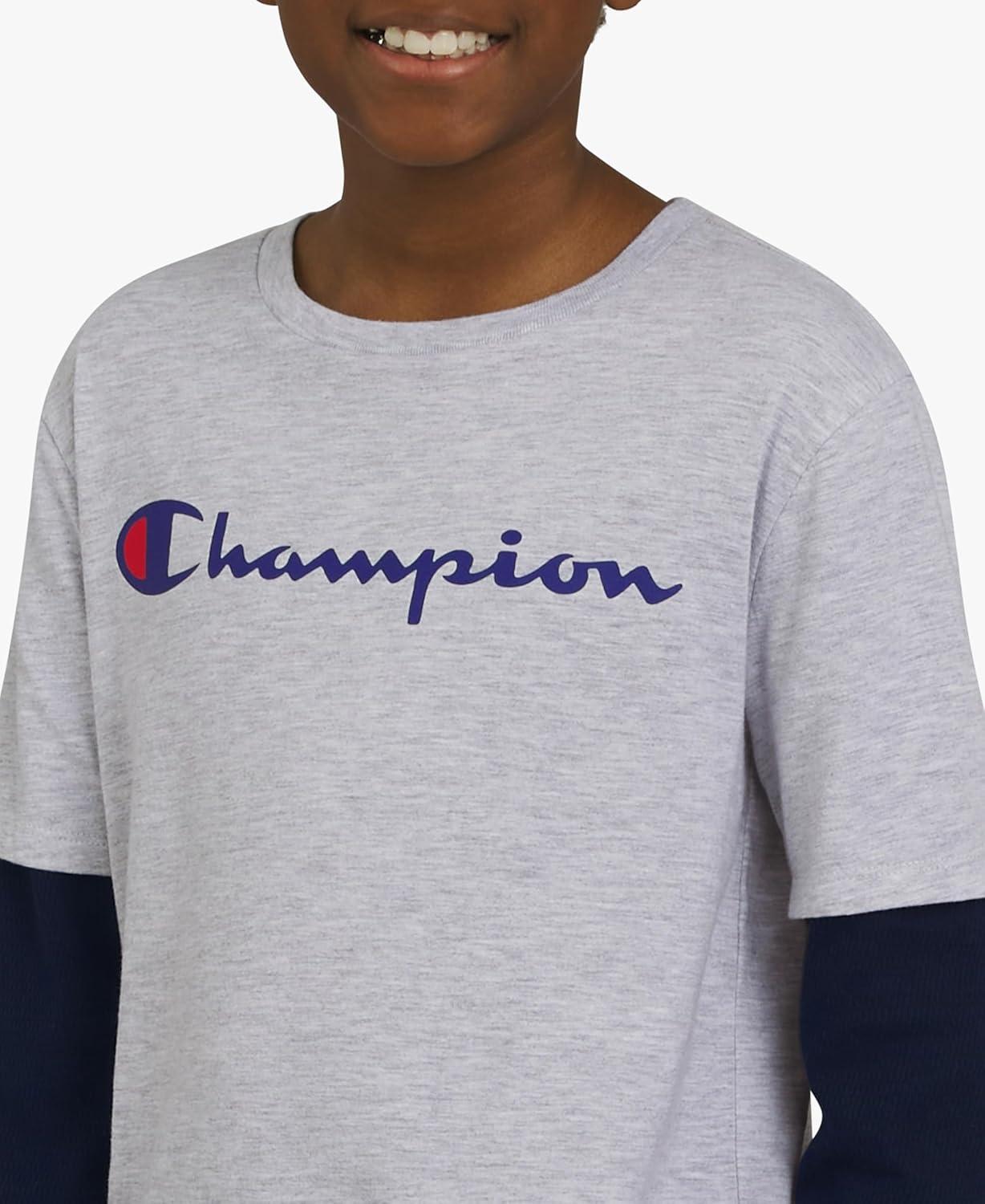 Champion Boys' Long Sleeve Tee Shirt for Kids Athletic Tops(Grey Navy)