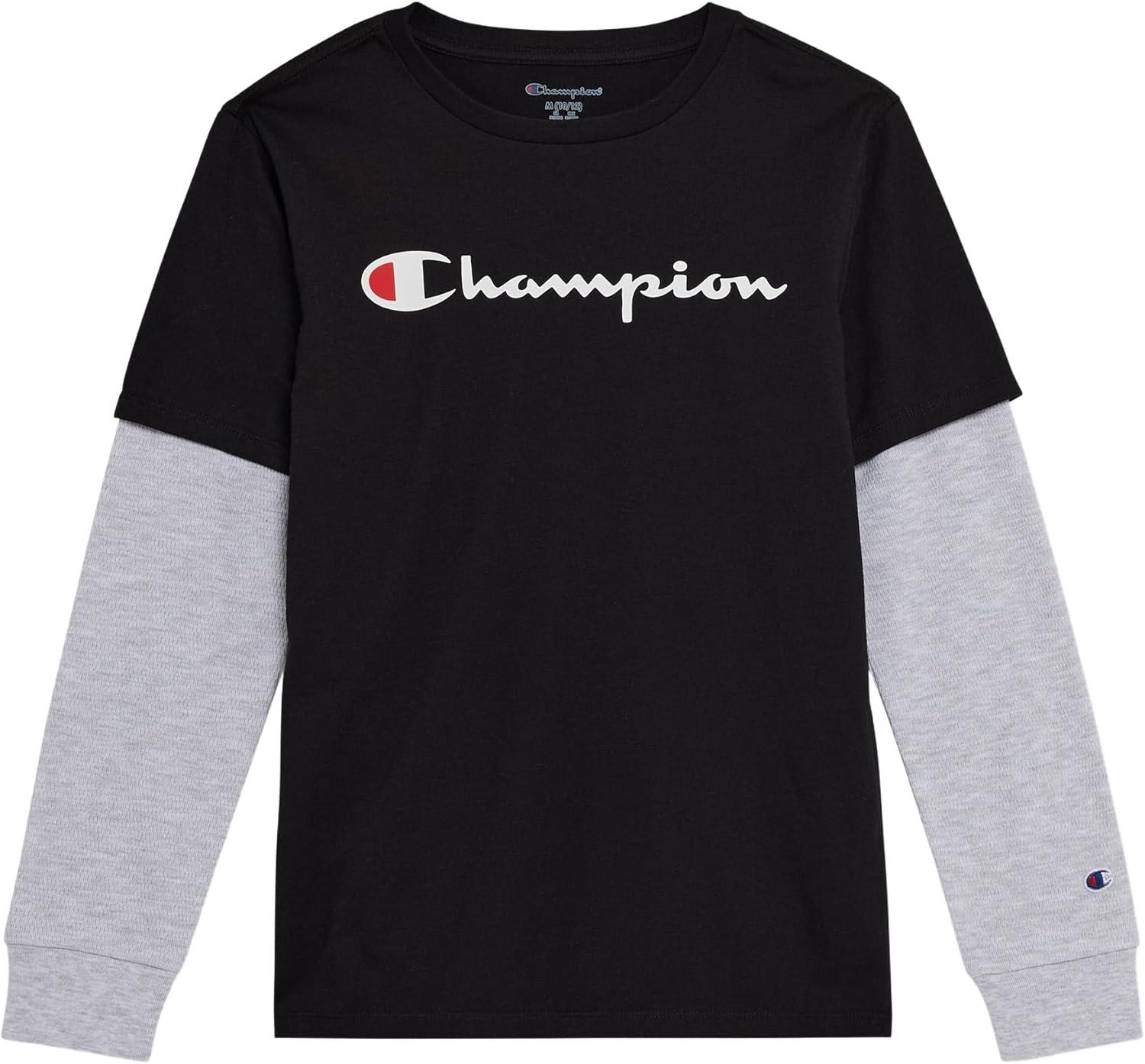 Champion Boys’ Long Sleeve Tee Shirt for Kids Athletic Tops(Jet Black)