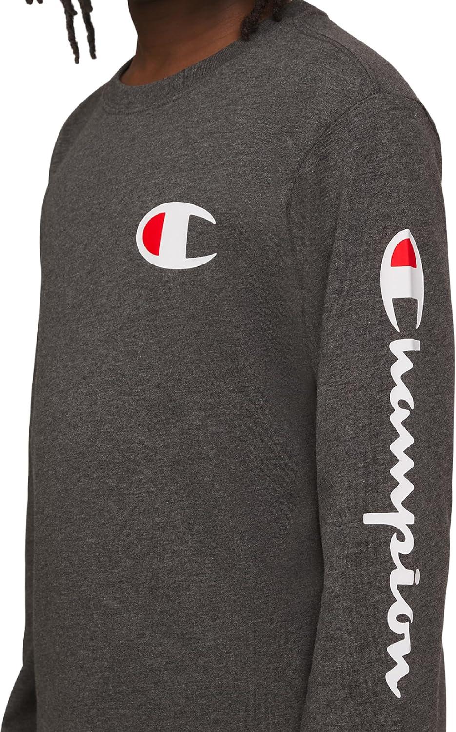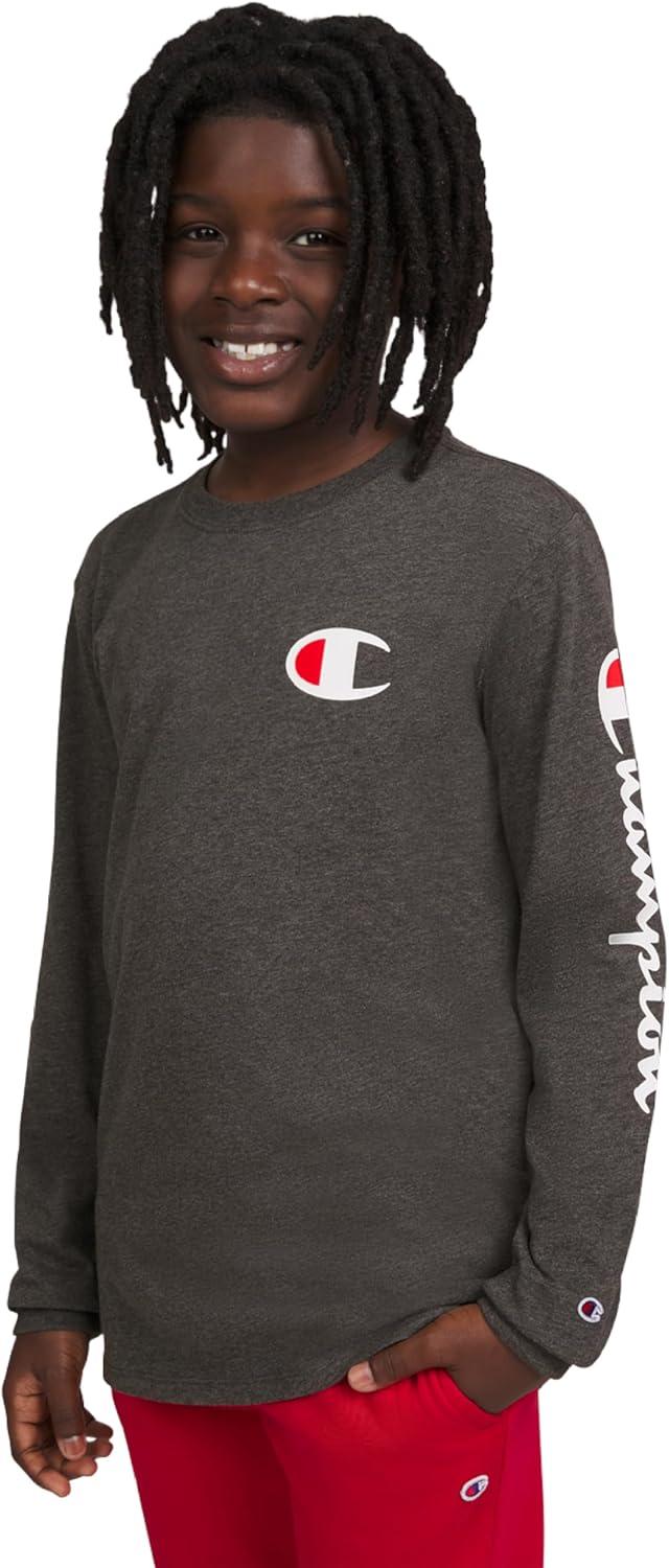 Champion Boys’ Long Sleeve Tee Shirt for Kids Athletic Tops(Signature Charcoal Heather)