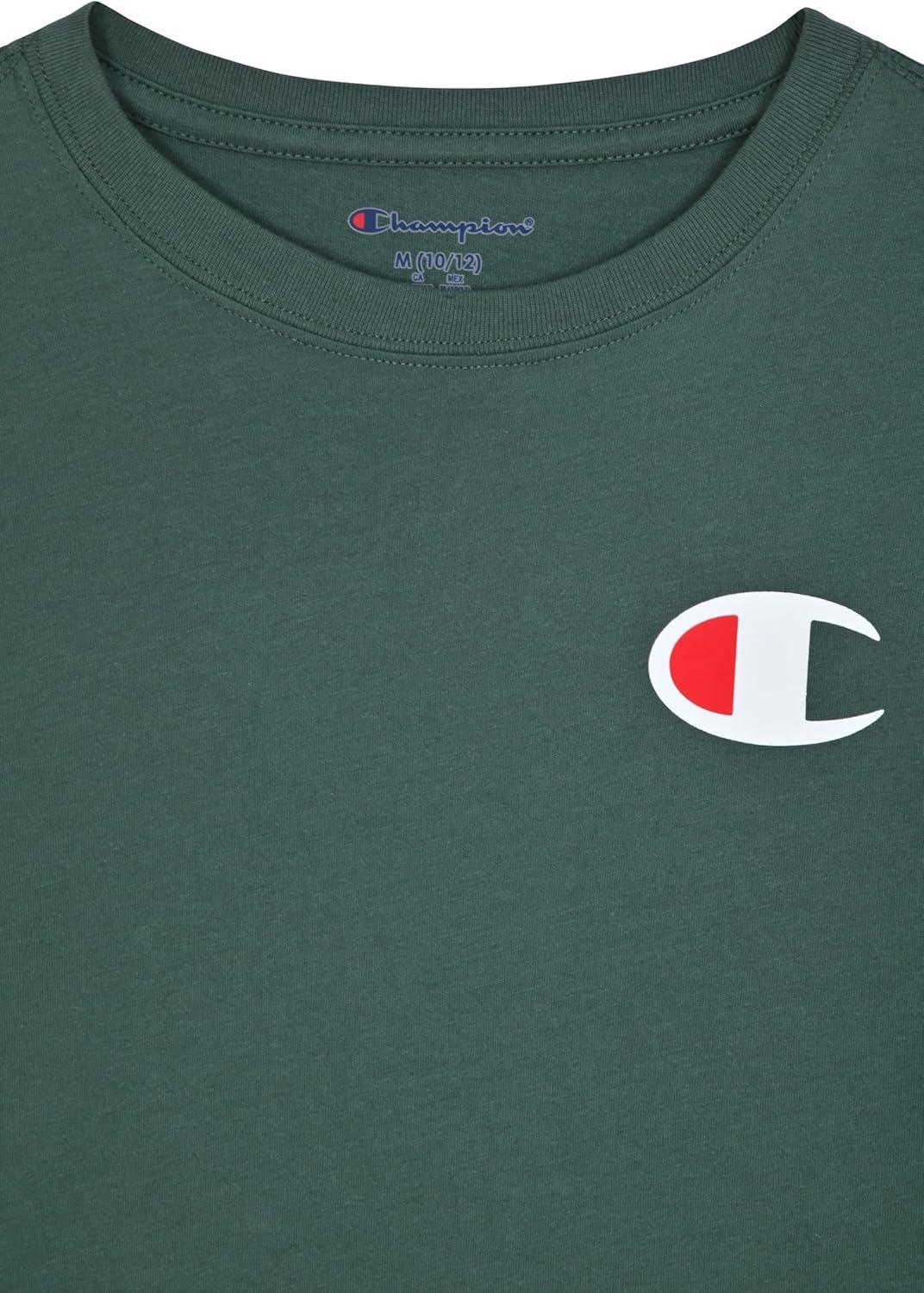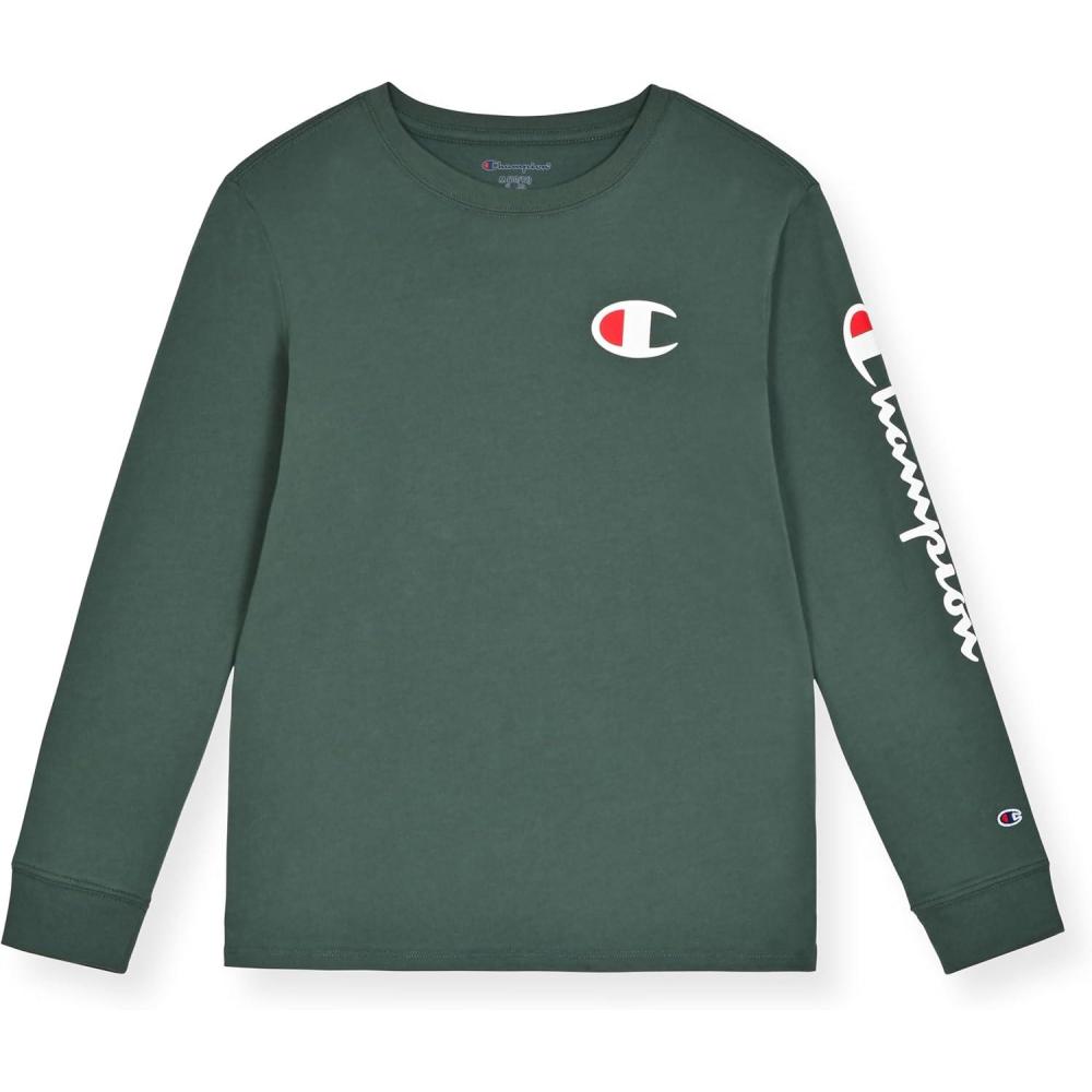 Champion Boys’ Long Sleeve Tee Shirt for Kids Athletic Tops(Signature Dark Forest Green)