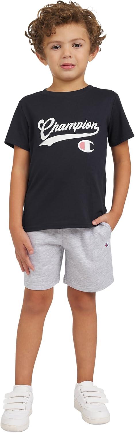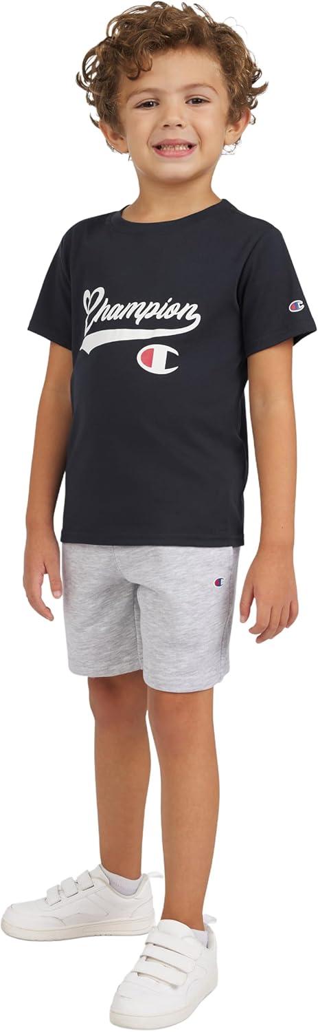 Champion Boys Shorts Sets 2 Piece Tee Shirt and Athletic Shorts for Kids(Signature Bright White)