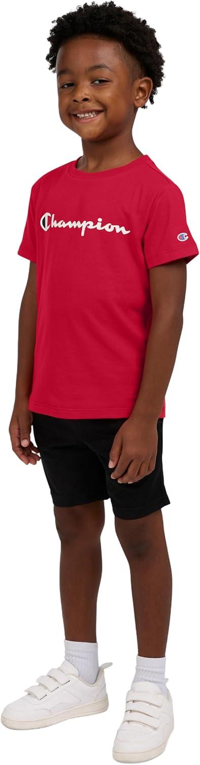 Champion Boys Shorts Sets 2 Piece Tee Shirt and Athletic Shorts for Kids(Signature Lychee Red)