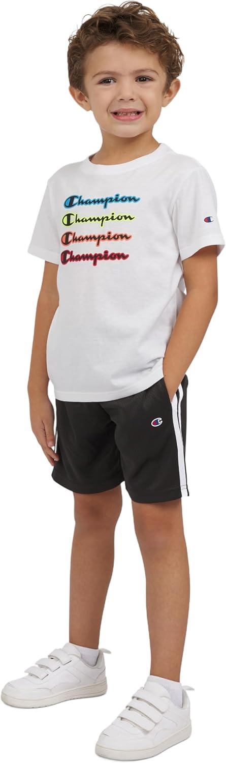 Champion Boys Shorts Sets 2 Piece Tee Shirt and Athletic Shorts for Kids(Signature White)