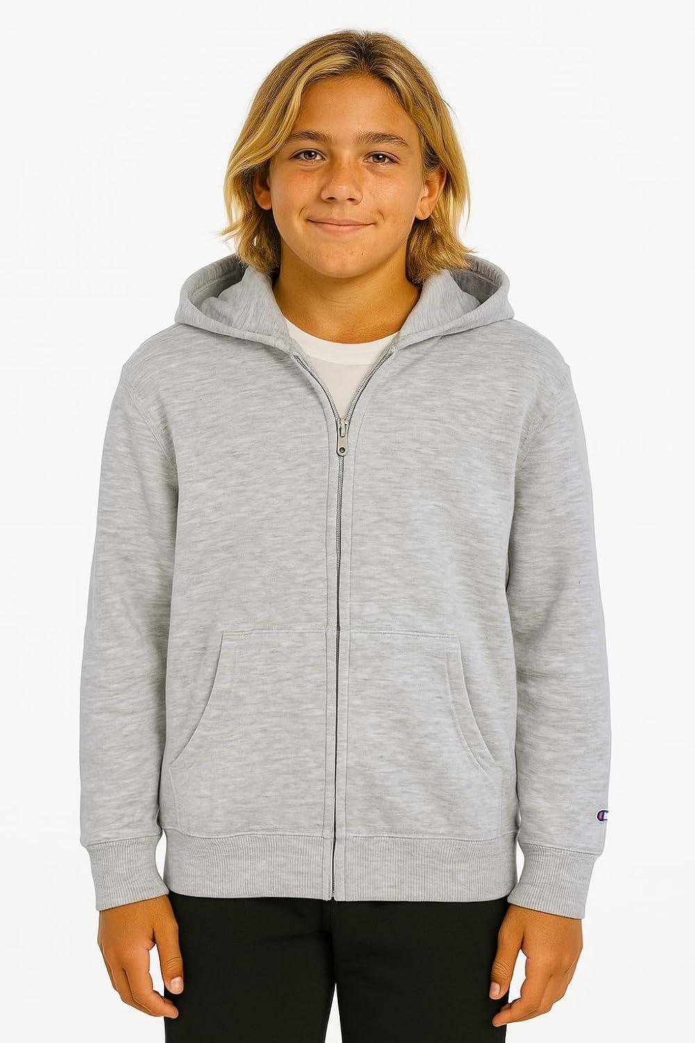 Champion Boys Zip Front Fleece Hoodie Sweatshirt for Kids(Grey Heather)