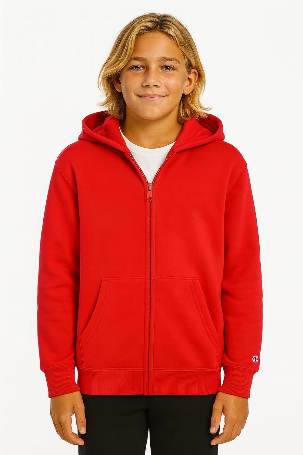 Champion Boys Zip Front Fleece Hoodie Sweatshirt for Kids(Lychee Red)