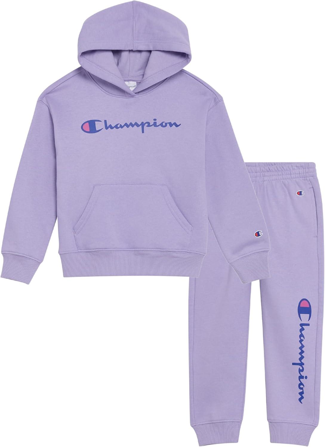 Champion Girls Hoodie and Sweatpant Set for Kids Athletic Fleece Sweatsuit(Lavender)