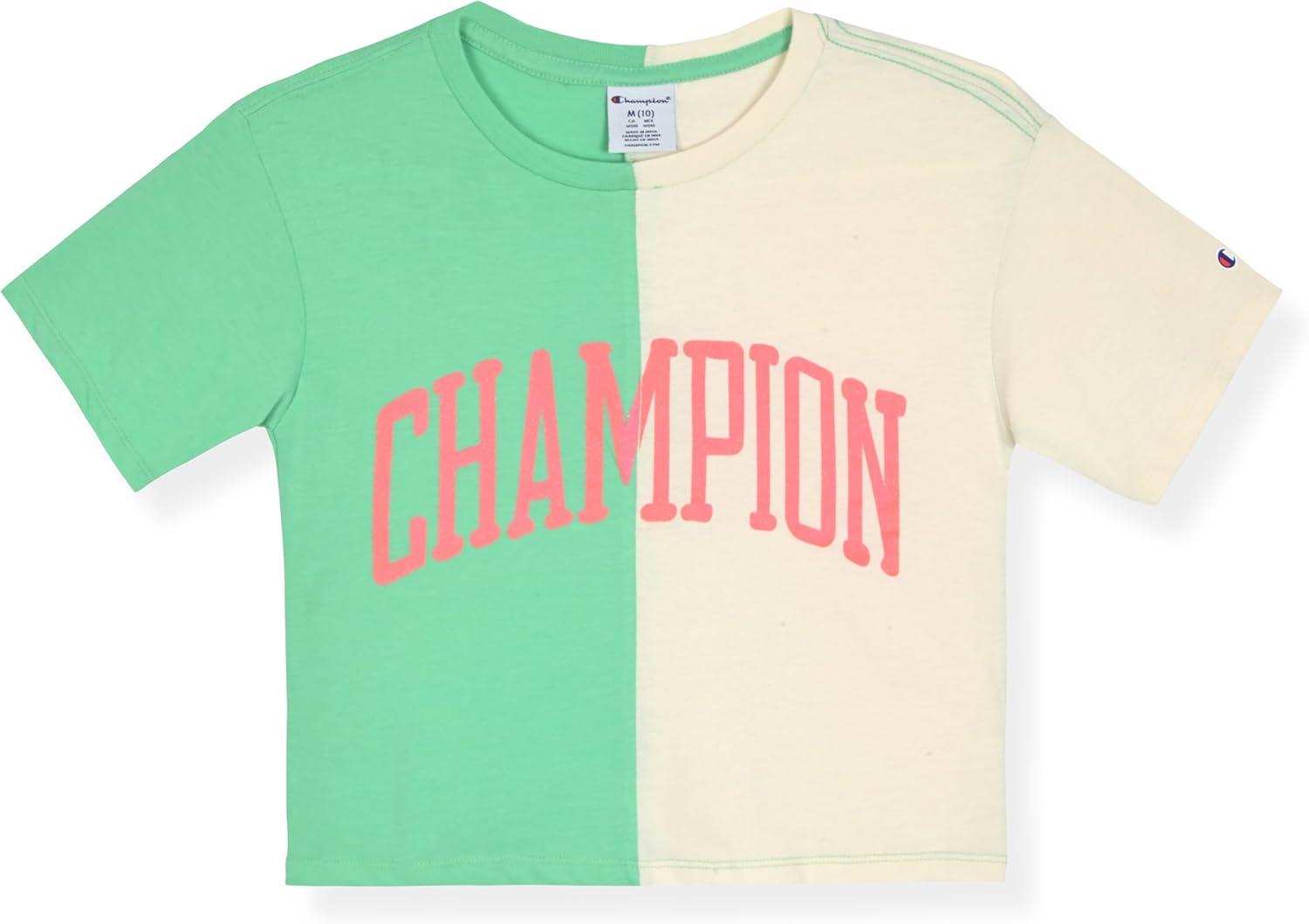 Champion Girls Tee Shirt for Kids Short Sleeve T-Shirt Girls Tops(Bright White-papaya Punch)