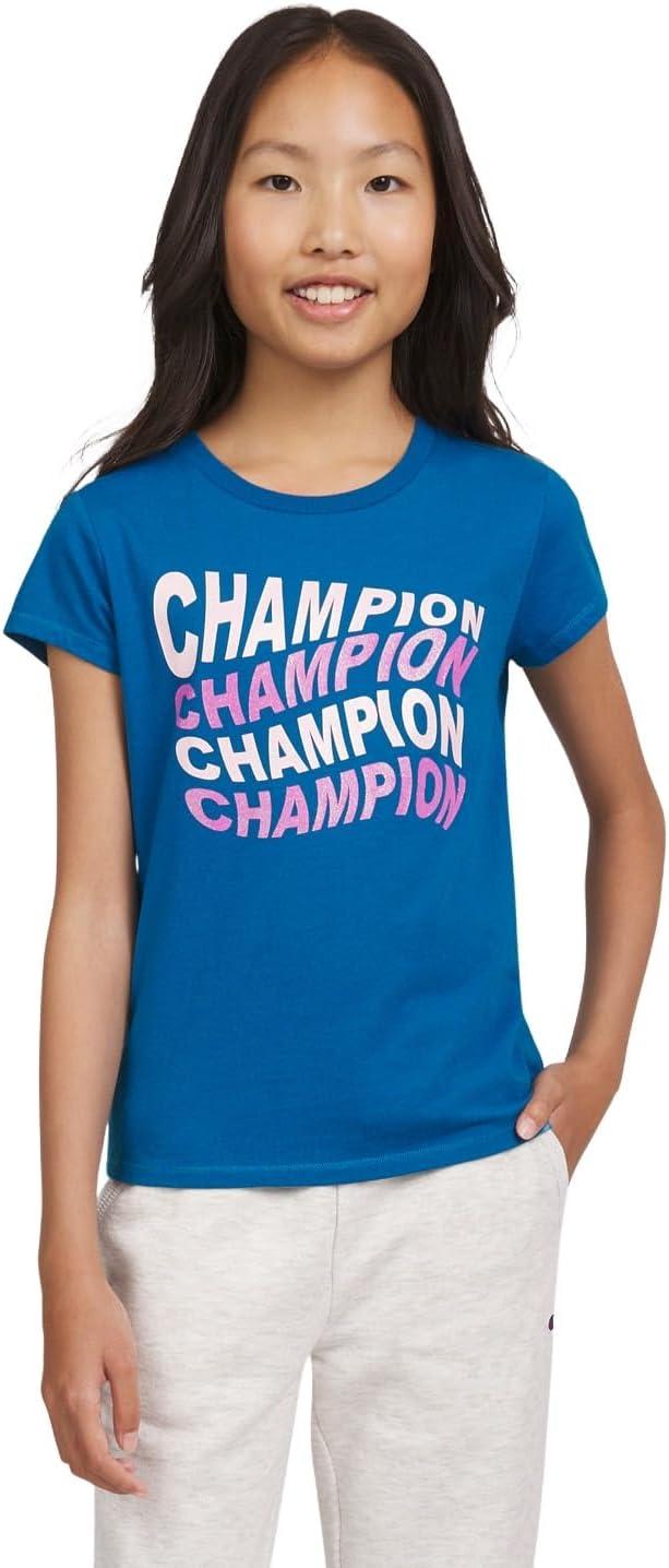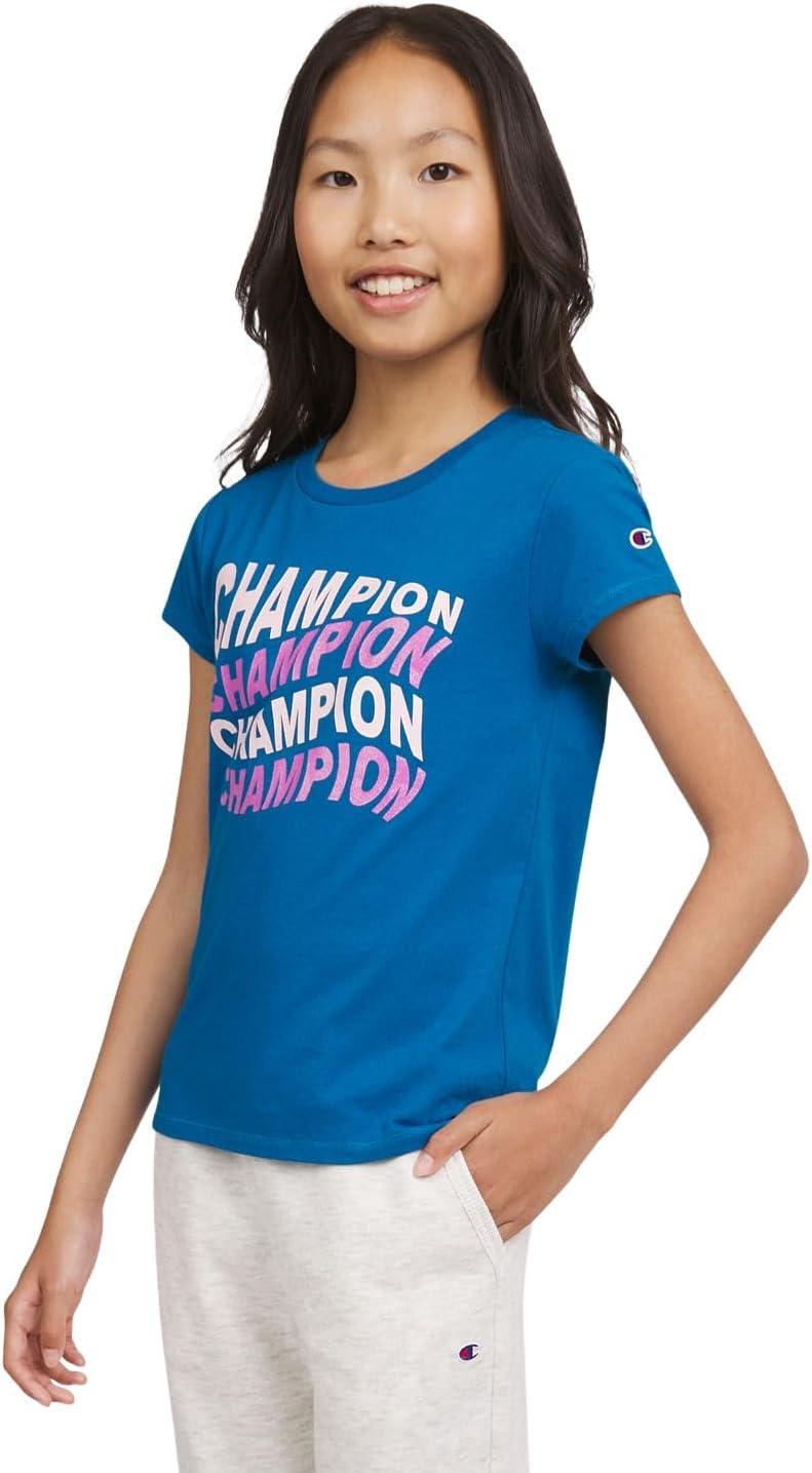 Champion Girls Tee Shirt for Kids Short Sleeve T-Shirt Girls Tops(Meadow Blue)