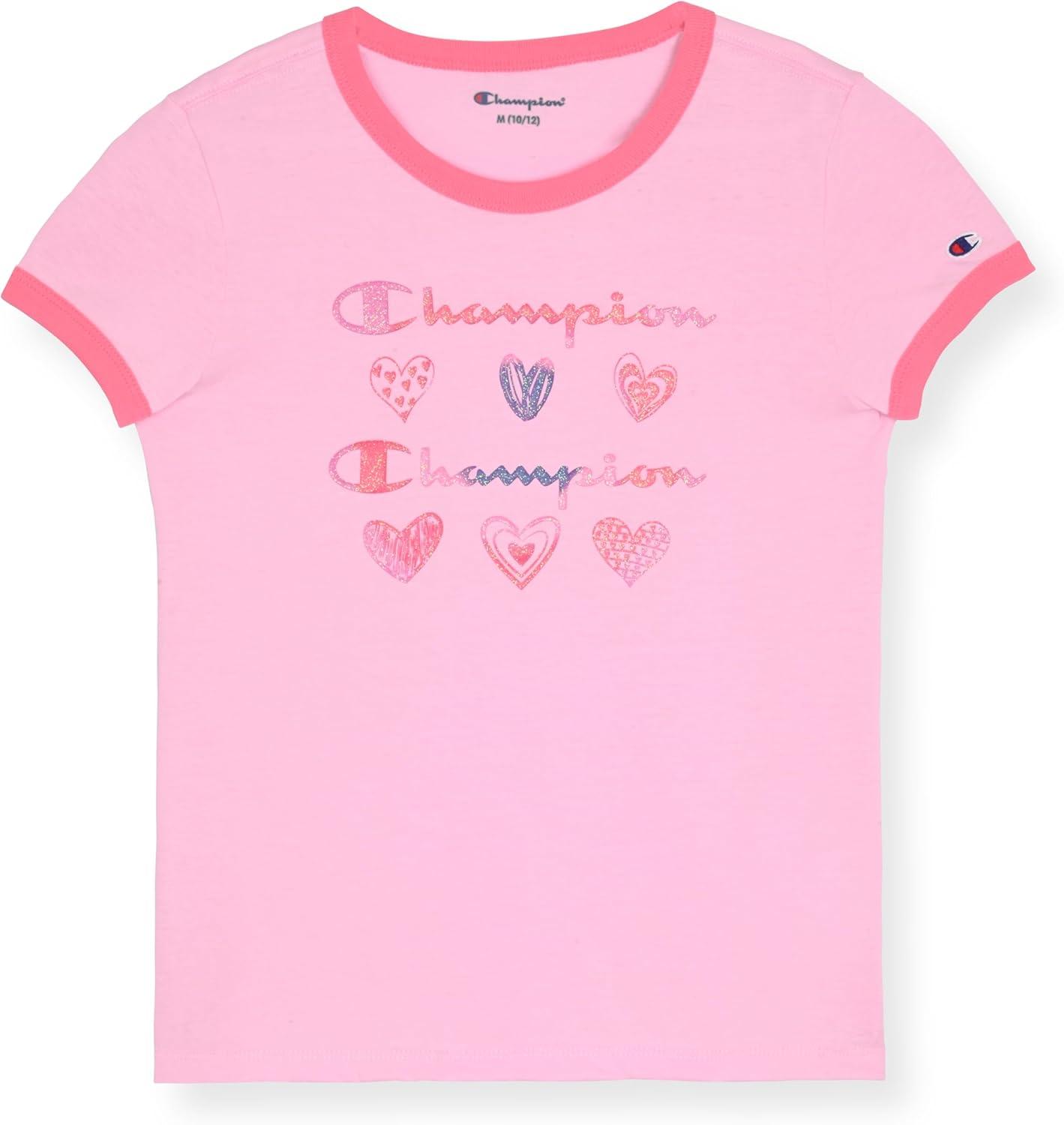 Champion Girls Tee Shirt for Kids Short Sleeve T-Shirt Girls Tops(Bright Pink-gray Heather)