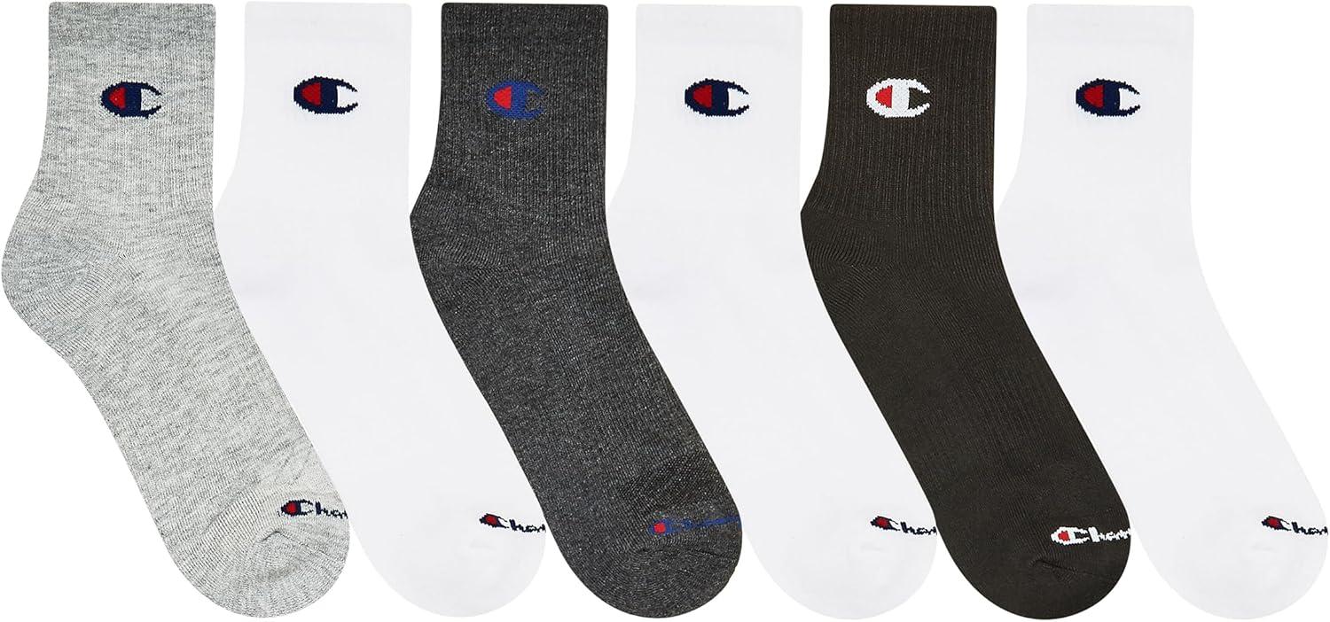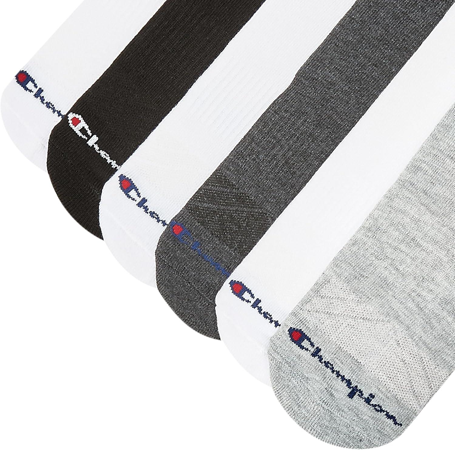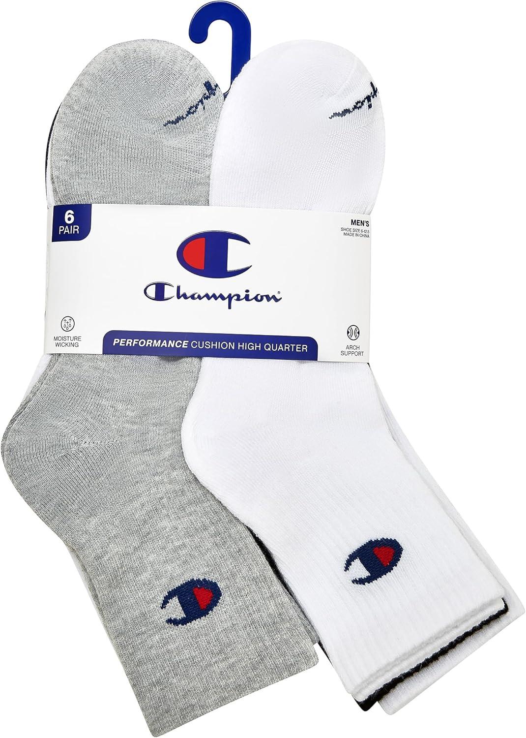 Champion Men's Ankle Socks – 6-Pack Moisture-Wicking Athletic Socks with Cushioning & Arch Support (Size 6-12)(High Quarter Multi (White Grey Black))