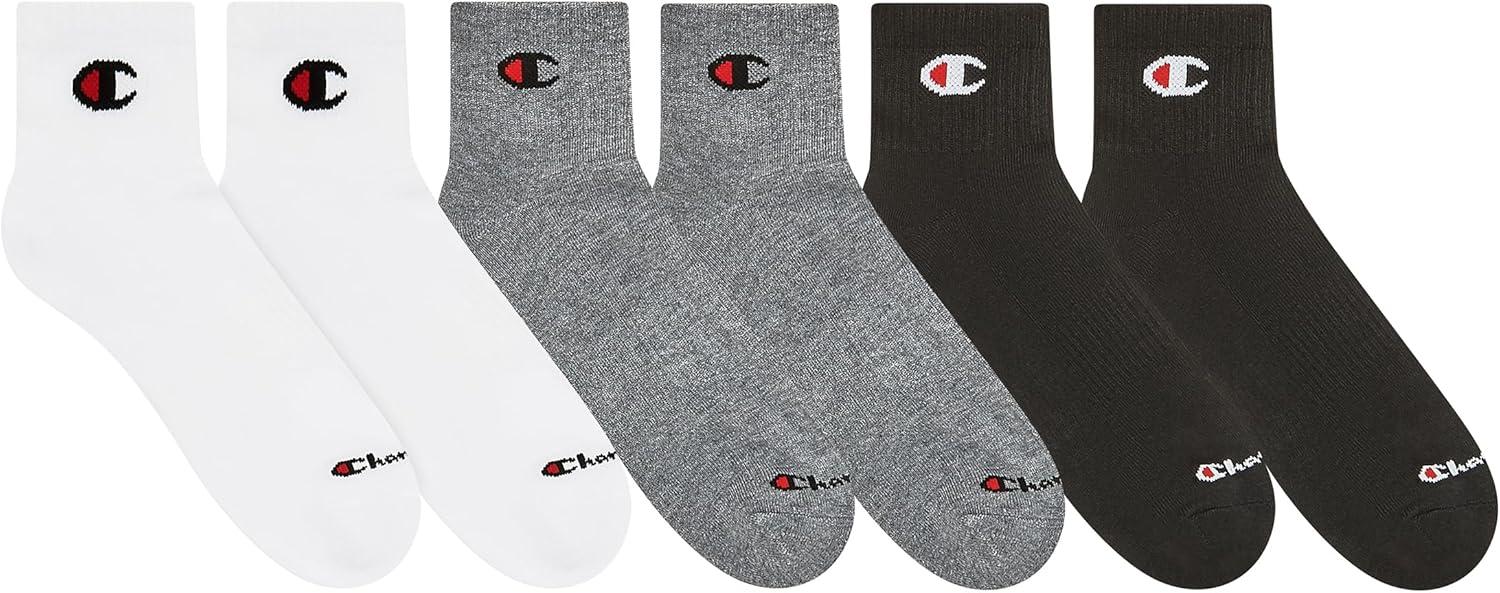 Champion Men's Ankle Socks – 6-Pack Moisture-Wicking Athletic Socks with Cushioning & Arch Support (Size 6-12)(Multi (White Grey Black))