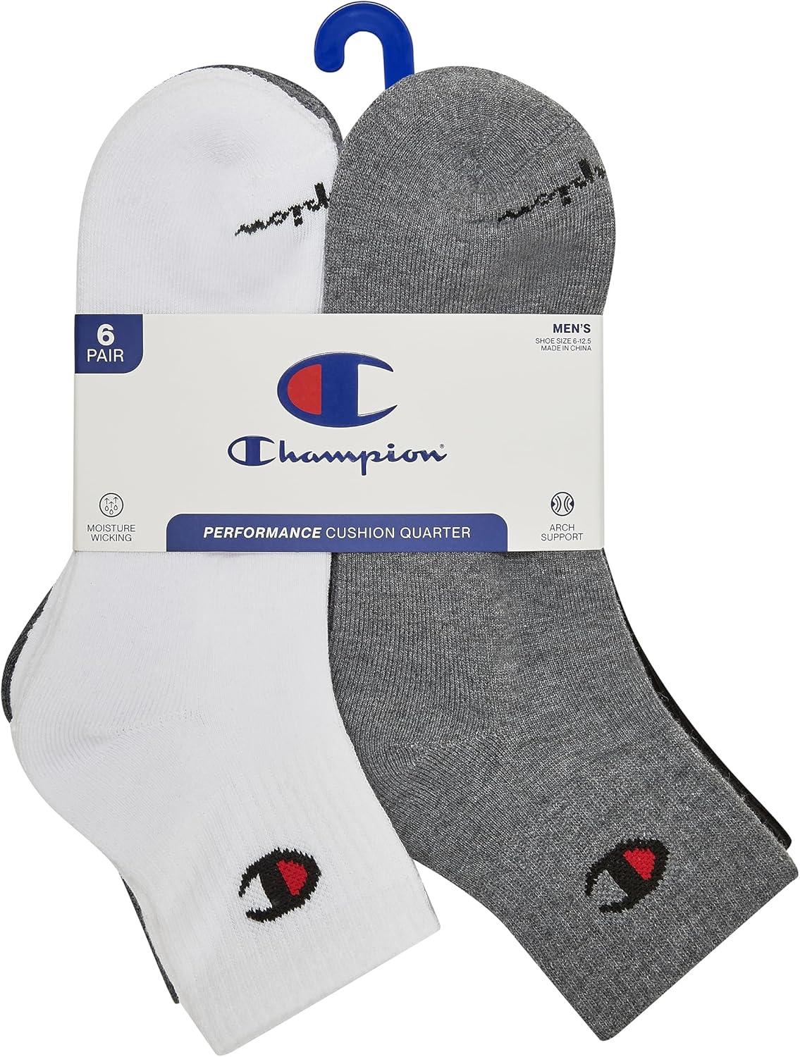Champion Men’s Ankle Socks – 6-Pack Moisture-Wicking Athletic Socks with Cushioning & Arch Support (Size 6-12)(High Quarter White)