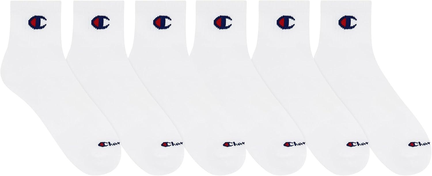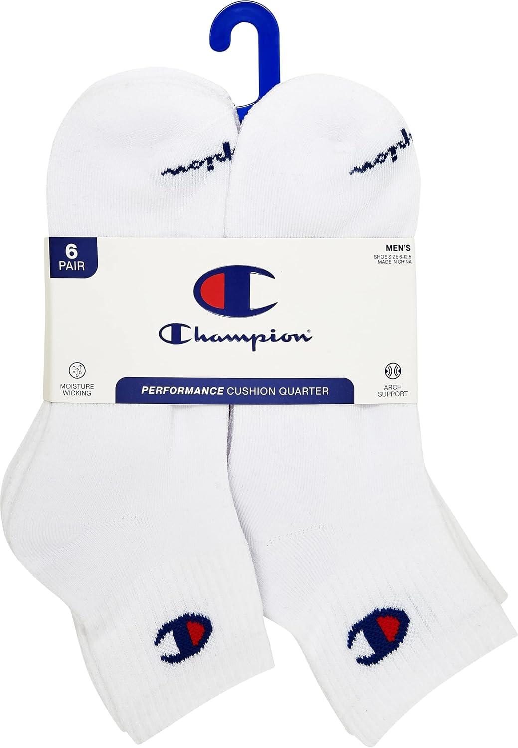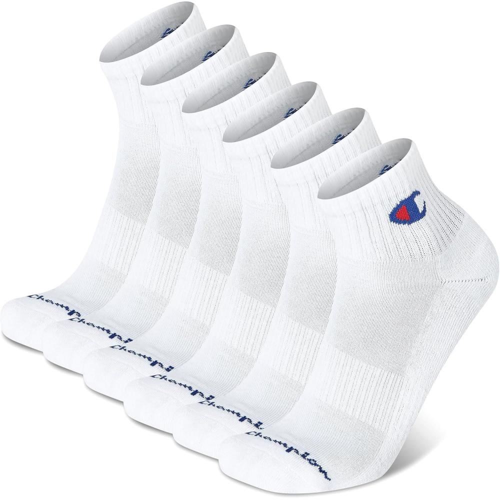 Champion Men’s Ankle Socks – 6-Pack Moisture-Wicking Athletic Socks with Cushioning & Arch Support (Size 6-12)(White – 6 Pack)