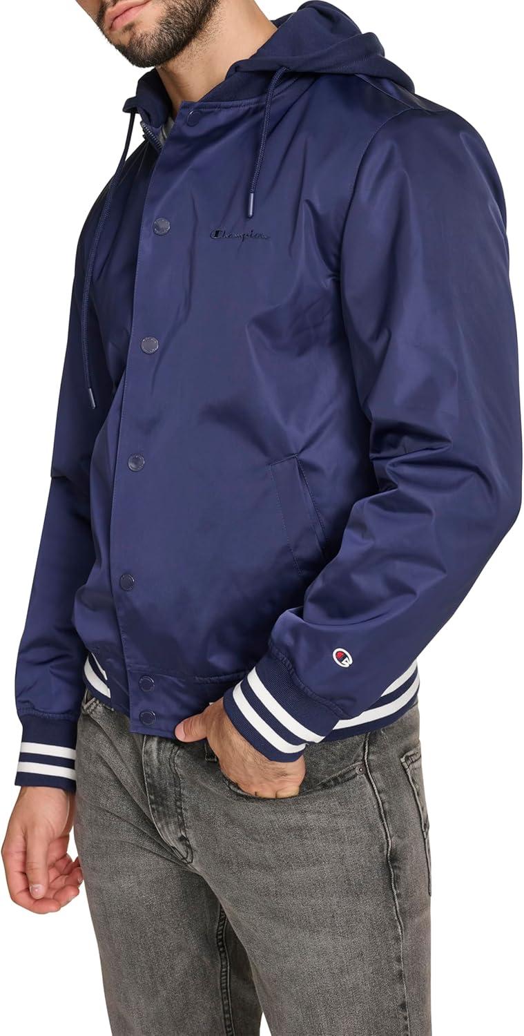 Champion mens Champion Men’s Lightweight Varsity Jacket With Jersey Hood(Peacoat)