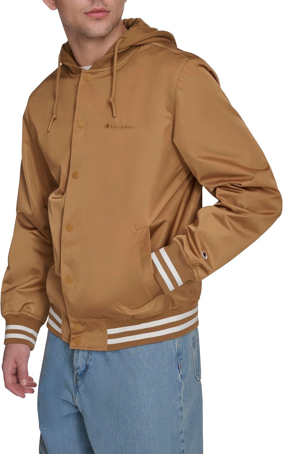 Champion mens Champion Men’s Lightweight Varsity Jacket With Jersey Hood(Tobacco)