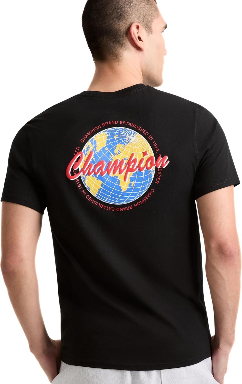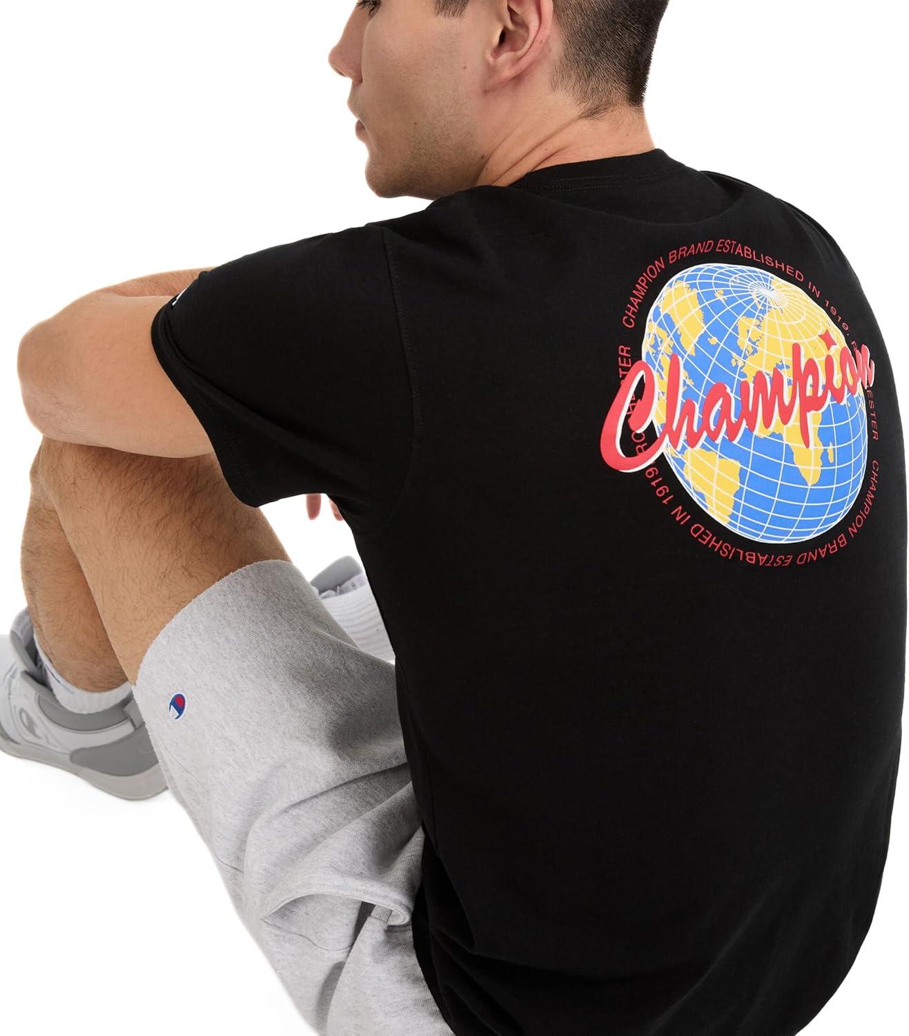 Champion Mens Classic Graphic Short Sleeve T-Shirt, Standard Fit, 2025 Graphics(Black - Globe)