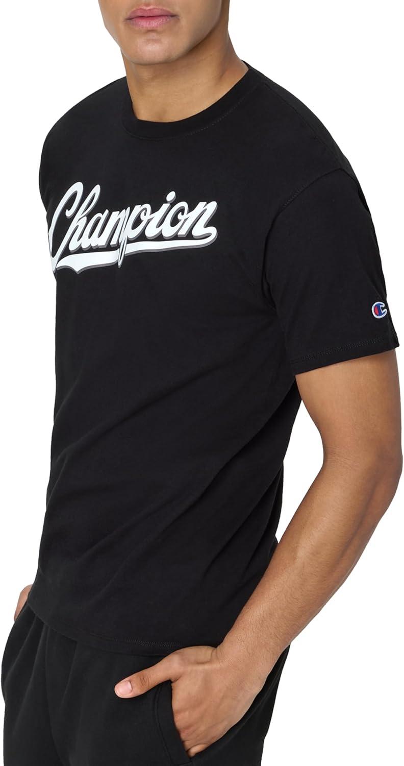 Champion Mens Classic Graphic Short Sleeve T-Shirt, Standard Fit, 2025 Graphics(Black - Script Logo)