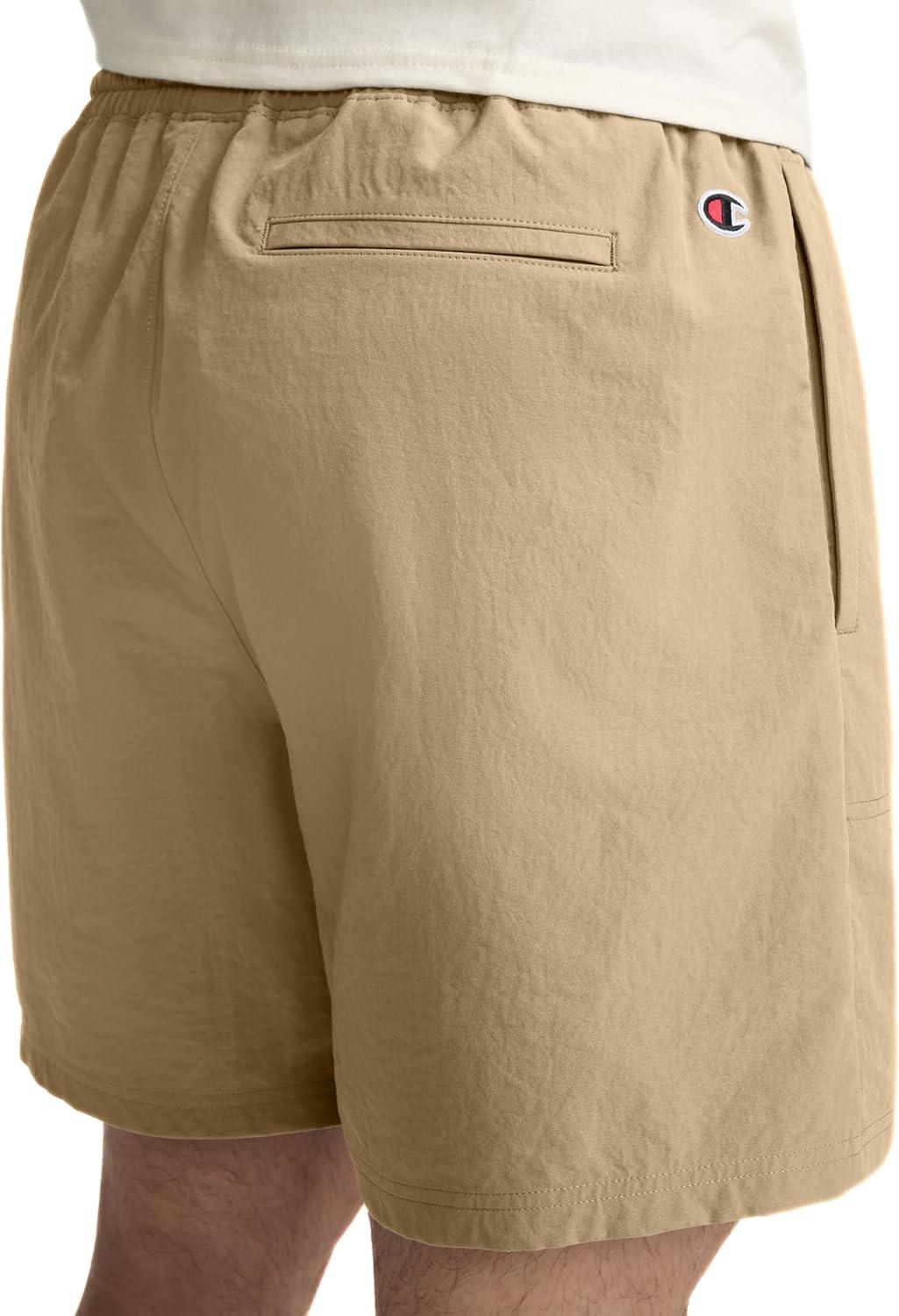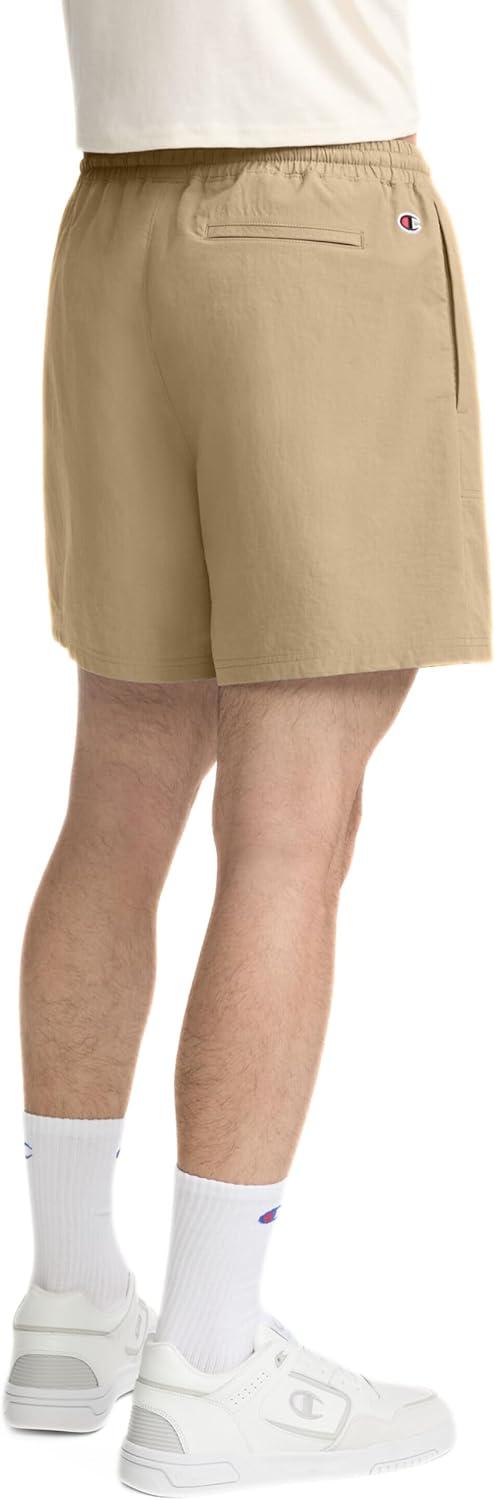 FOR WHEREVER THE DAY TAKES YOU Soft woven feel with a stretch fabric, Champion's Woven Shorts are a smart choice. The 6″ inseam hitting above the knee creates an ultra-versatile silhouette, combining a classic fit with around the town comfort. You'll welcome the utility inspired side-seam pockets, and enclosed elastic waistband with functioning drawcords to adjust the waist. Embroidered script logo under the left waistband and Iconic C patch on back left hip. These lightweight performance shorts are the ultimate in reliable, all-purpose utility shorts.