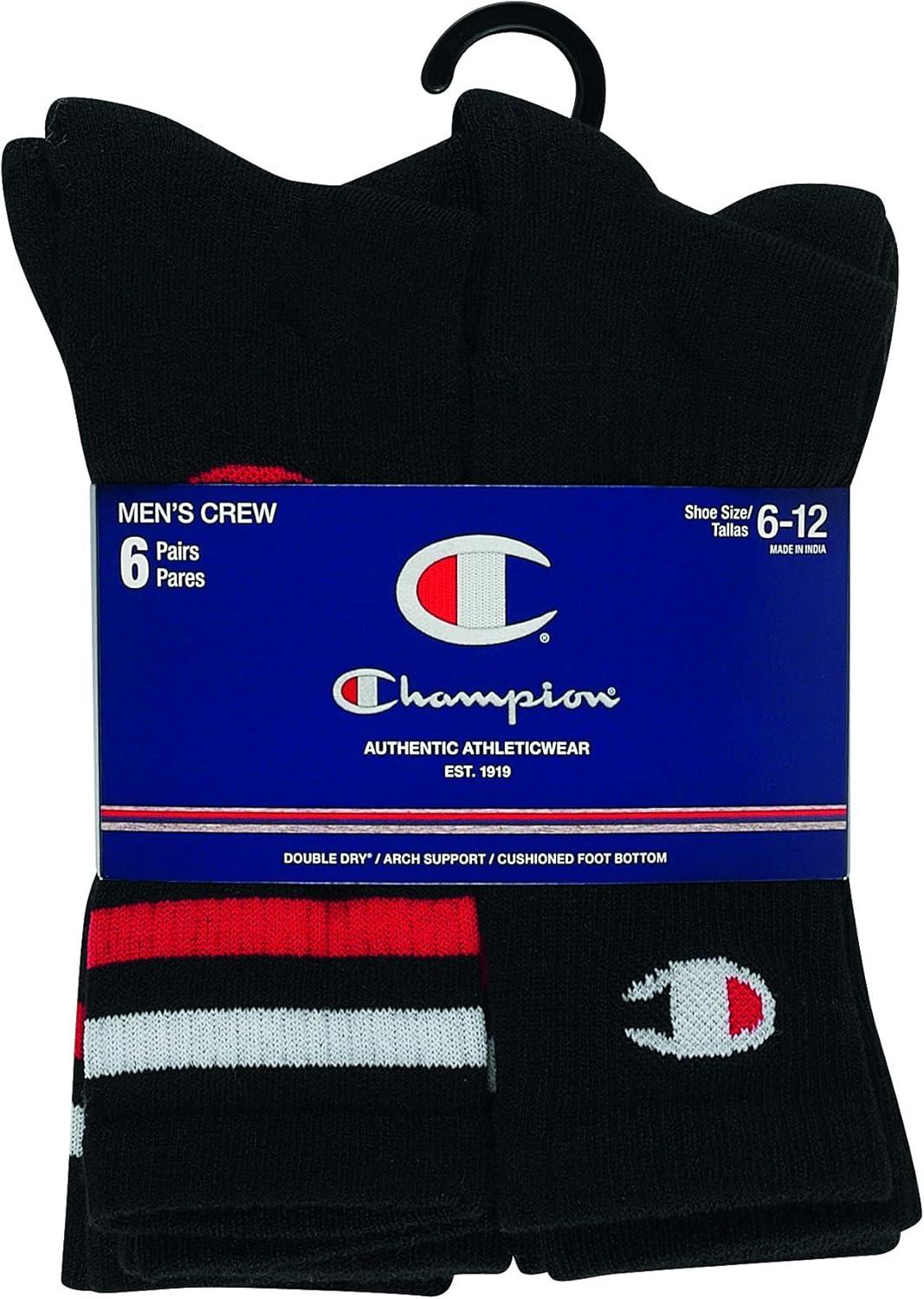 Champion mens Crew Socks – Moisture-wicking Athletic Socks With Cushioning & Arch Support (Size 6-12)(Black With Stripes – 6 Pack)