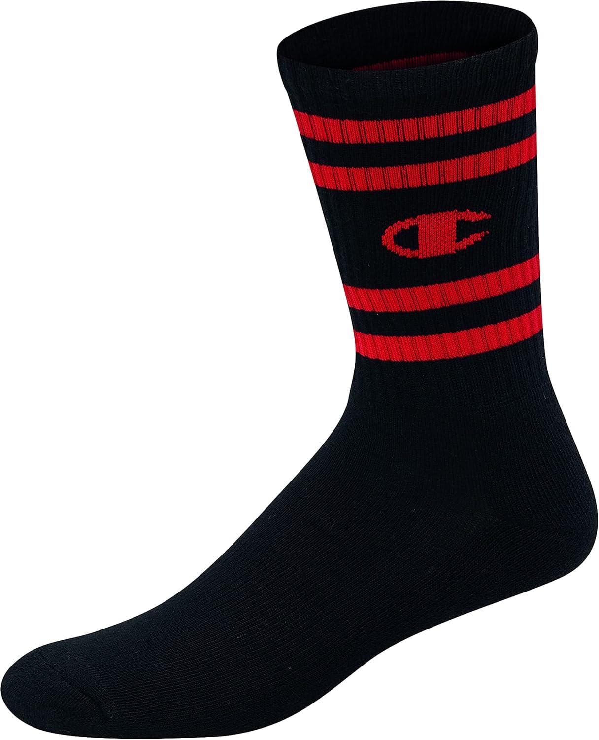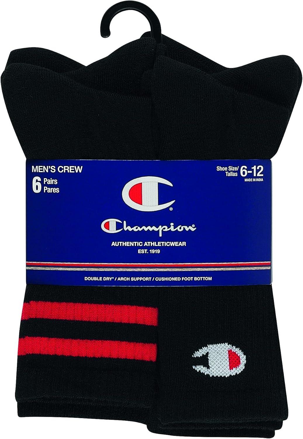 Champion mens Crew Socks – Moisture-wicking Athletic Socks With Cushioning & Arch Support (Size 6-12)(Black With Stripes – 6 Pack)