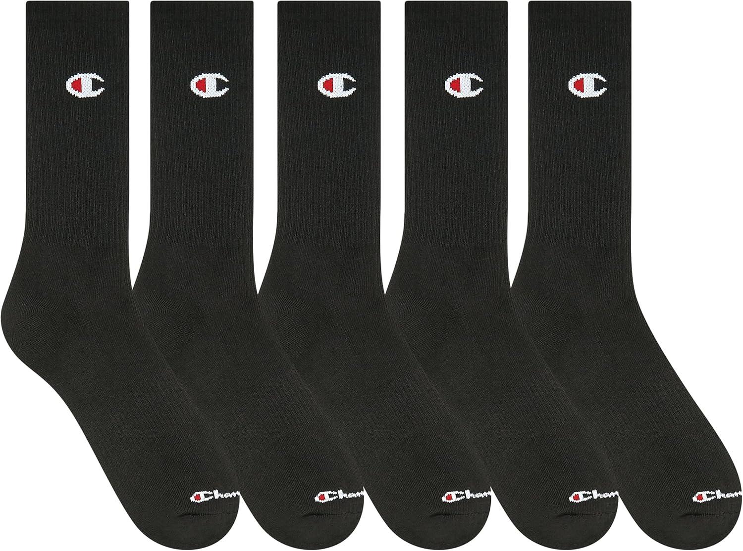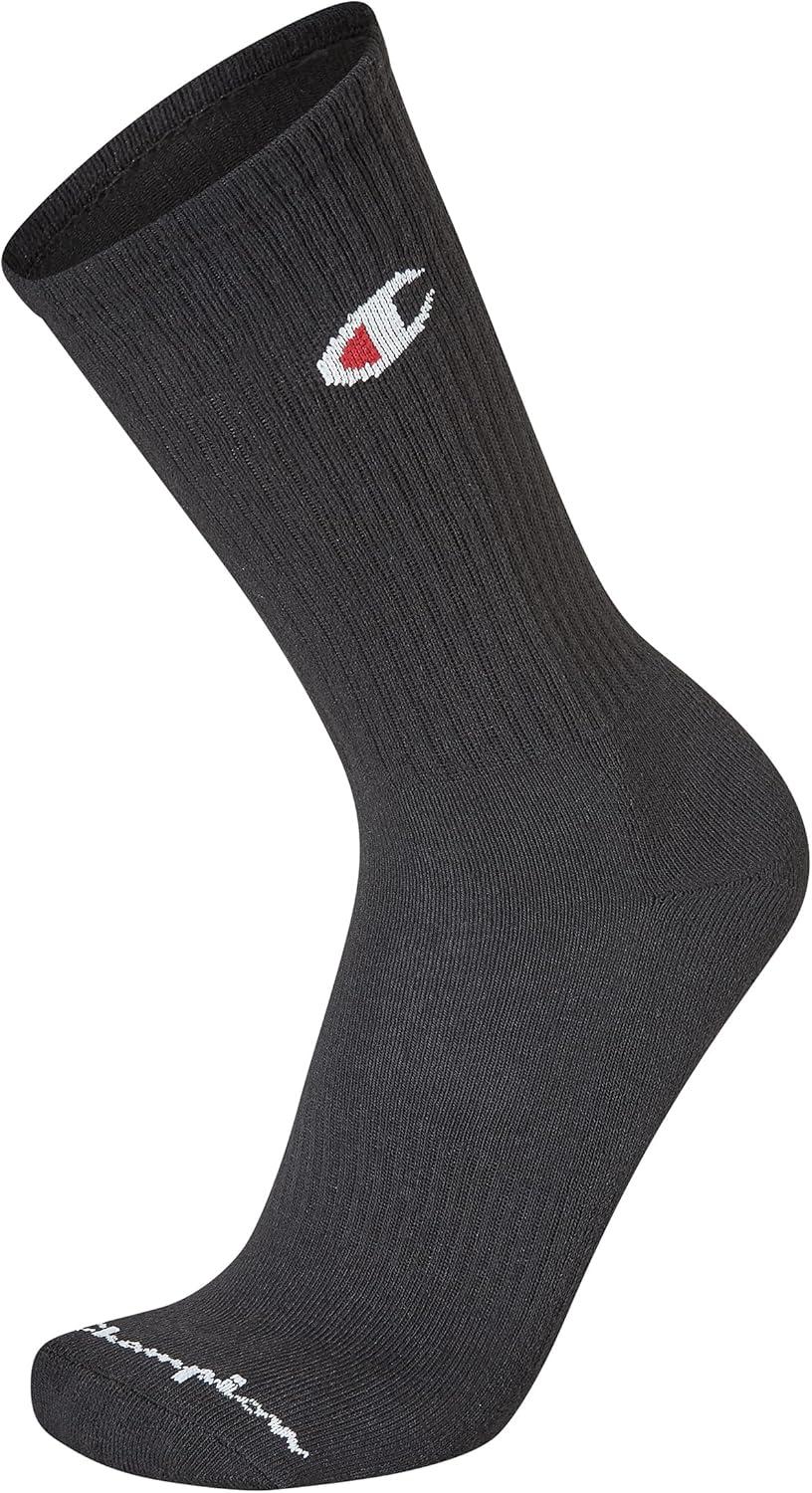 Champion mens Crew Socks – Moisture-wicking Athletic Socks With Cushioning & Arch Support (Size 6-12)(Black Crew C – 6 Pack)