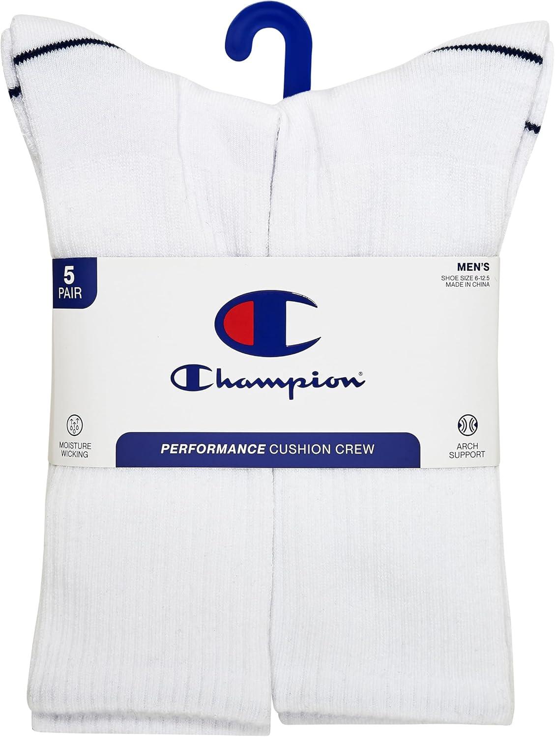 Champion mens Crew Socks – Moisture-wicking Athletic Socks With Cushioning & Arch Support (Size 6-12)(White Heel/Toe)