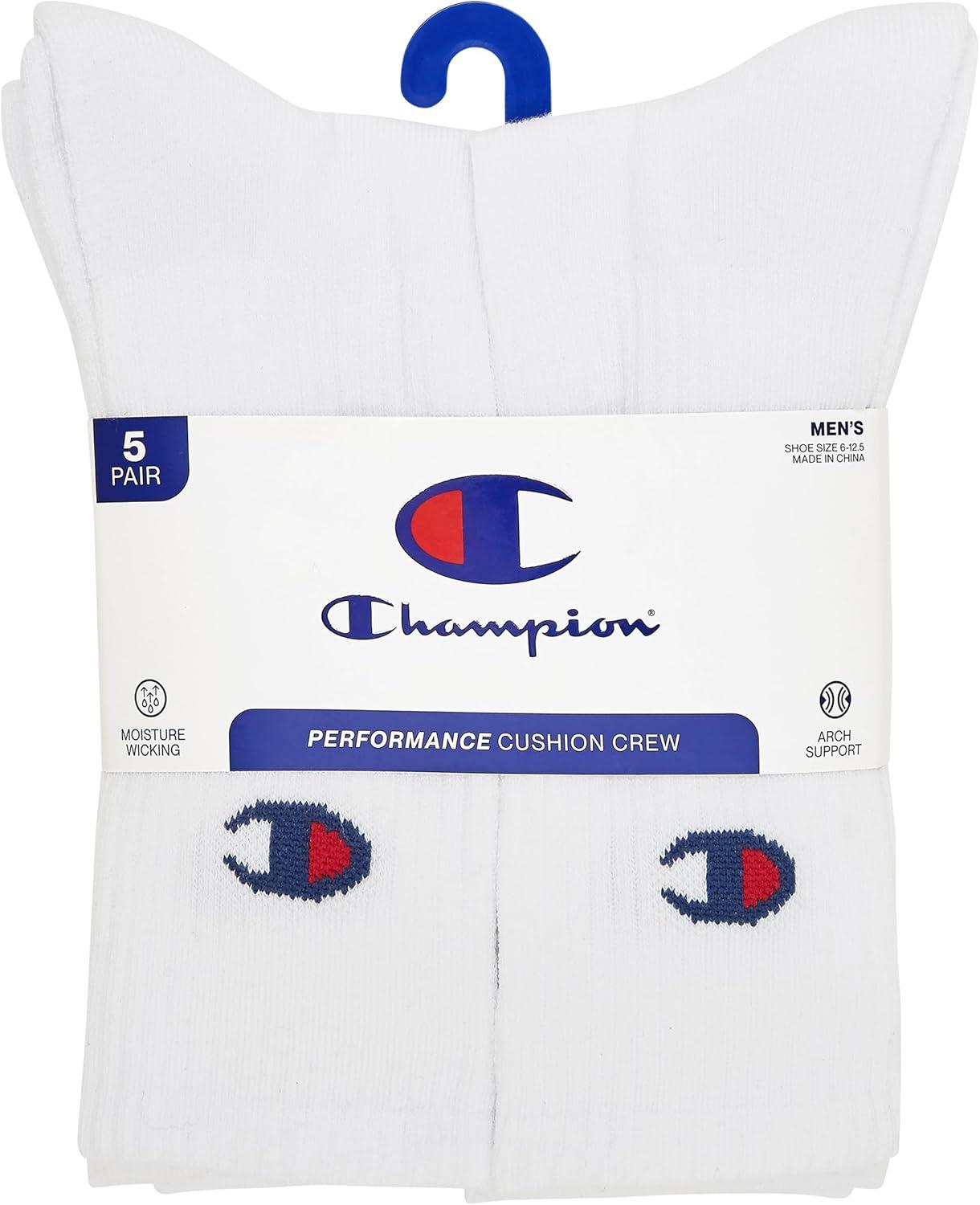Champion mens Crew Socks – Moisture-wicking Athletic Socks With Cushioning & Arch Support (Size 6-12)(White – 6 Pack)