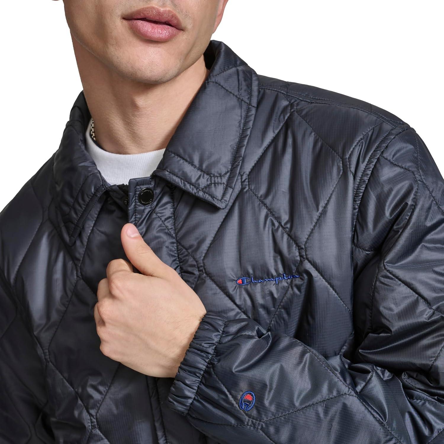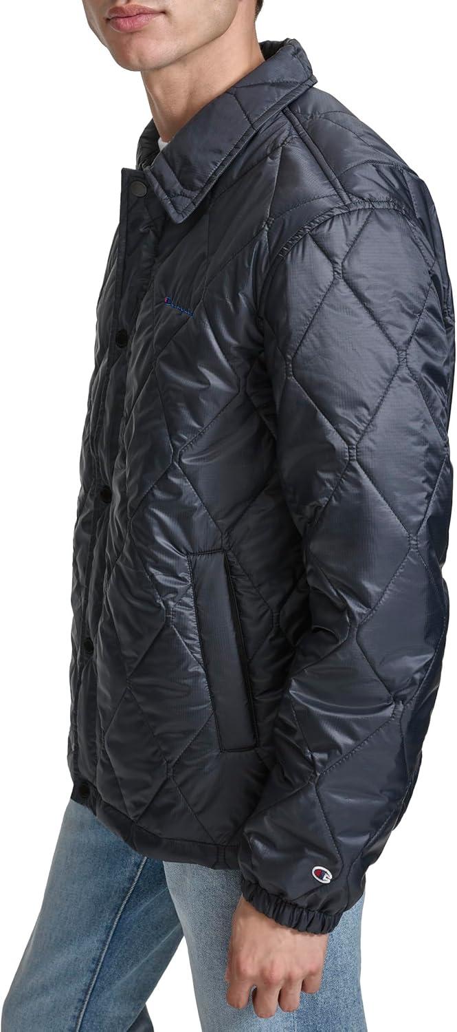 Discover timeless elegance with the Champion diamond quilted coaches jacket, featuring a refined laydown collar and the iconic Champion script logo at the left chest. This jacket blends classic design with modern warmth, making it a perfect choice for both stylish outings and casual comfort.