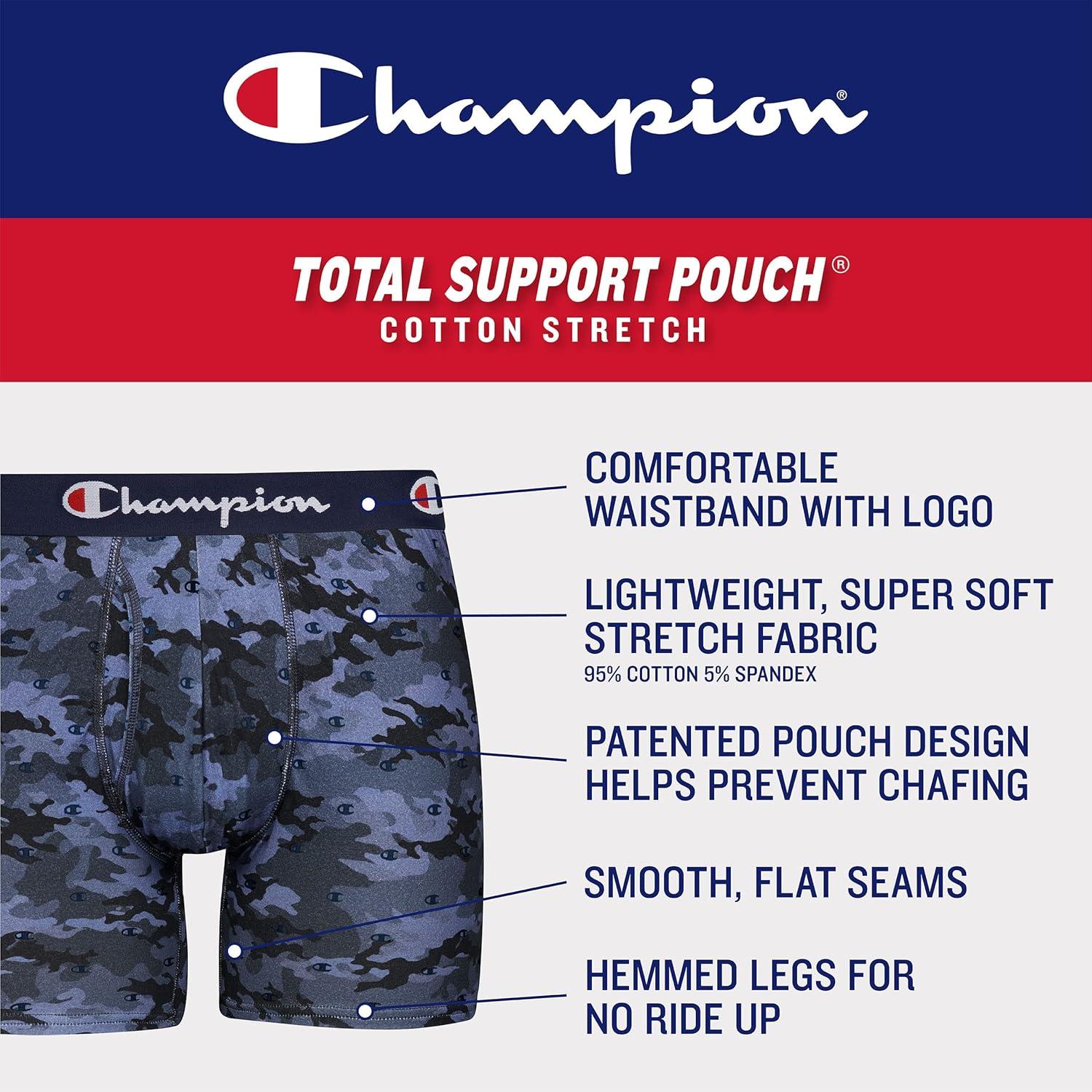 Champion® stretch cotton boxer briefs are your all-day, Every Day Comfort solution. Made to move when you do, this men’s underwear is constructed from a super-soft cotton blend