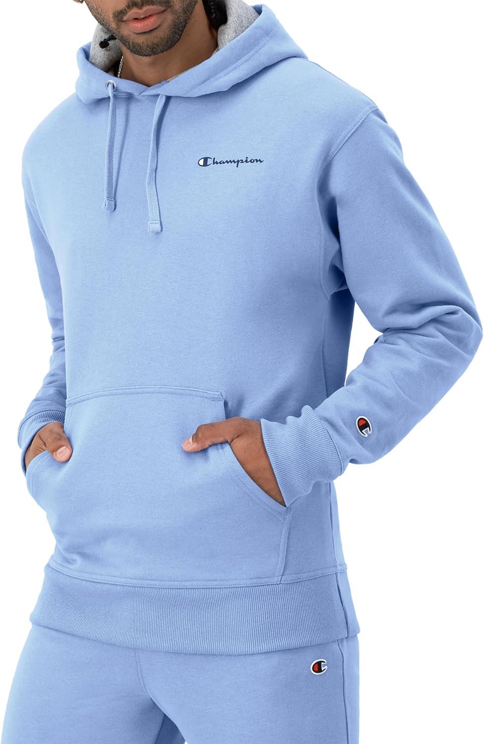 Champion Men’s Fleece Script Logo Hoodie (Reg. Or Big & Tall)(Plaster Blue Small Script)