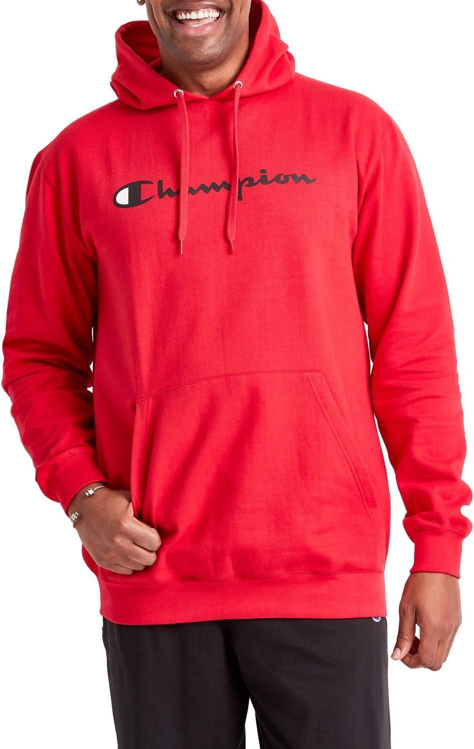 Champion Men’s Fleece Script Logo Hoodie (Reg. Or Big & Tall)(Team Red Scarlet Script)