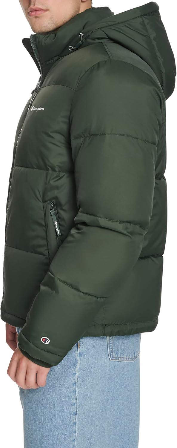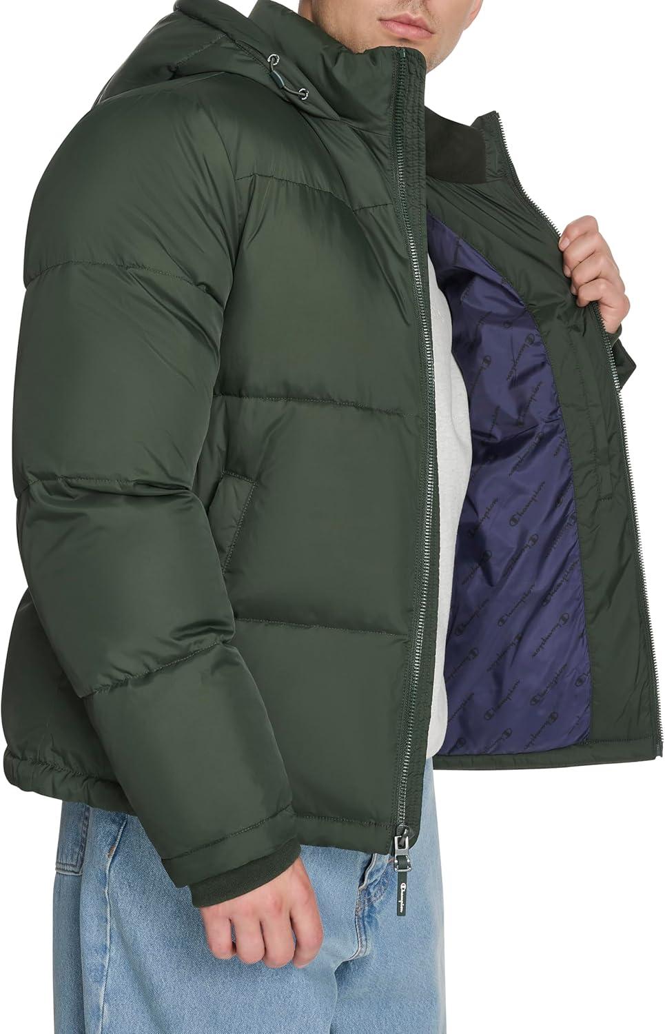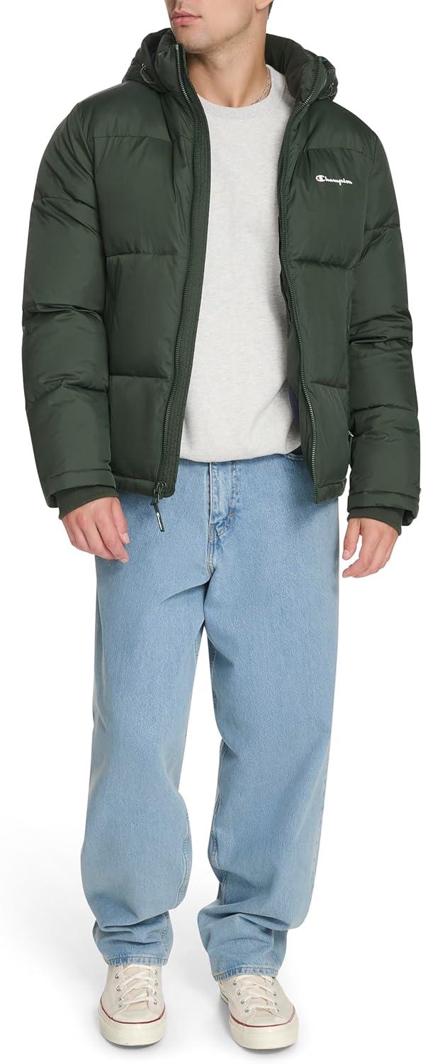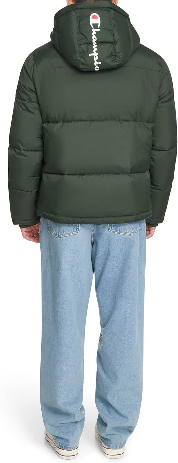 Wrap yourself in timeless warmth with this classic hooded puffer jacket, adorned with the iconic Champion script logo on the chest and hood. This sleek, versatile piece combines cozy insulation with a touch of sporty elegance, making it your go-to for style and comfort.