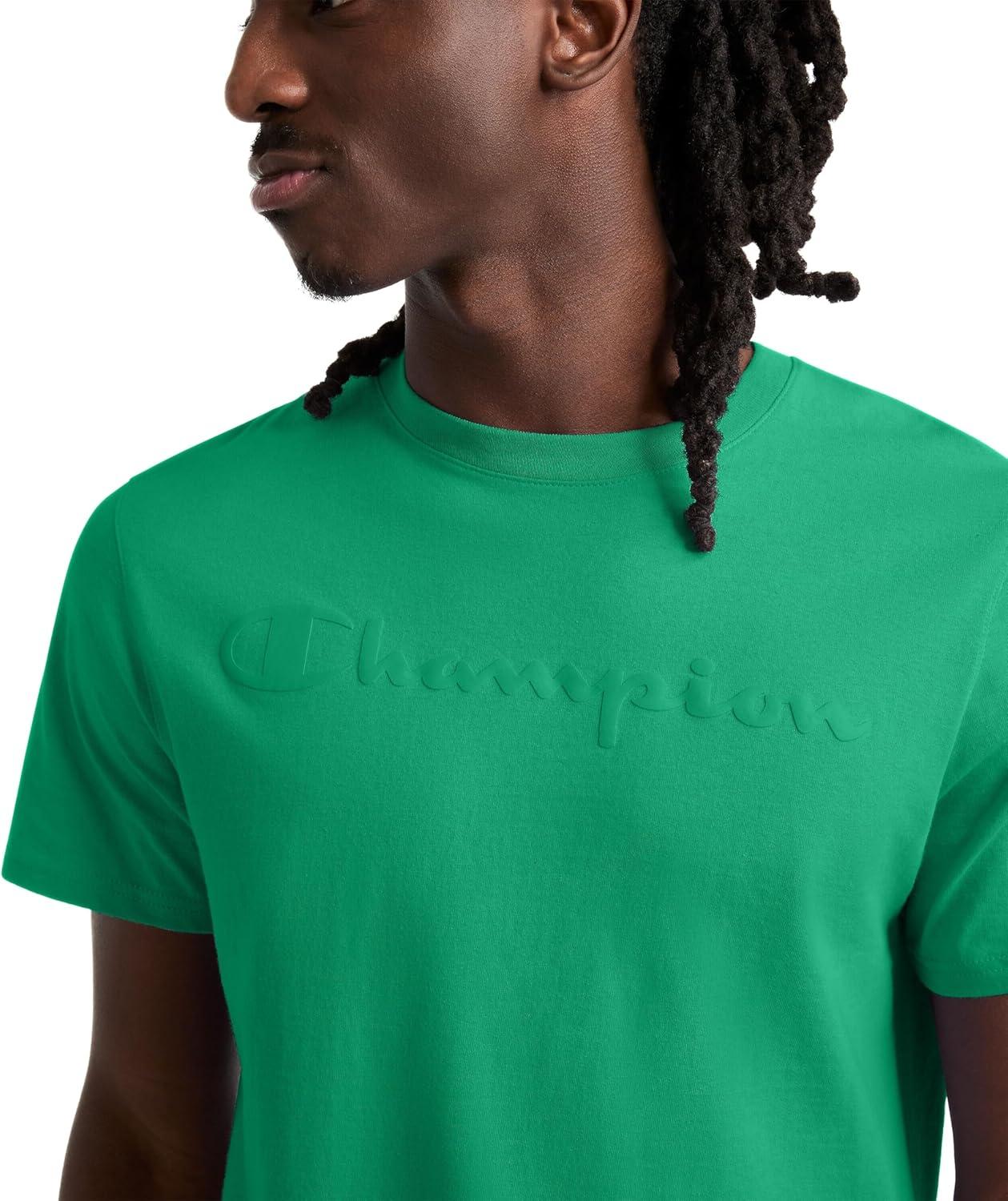 Champion Men's Heritage Short Sleeve Tee, Men’s T-Shirts, Vintage Shirts, Men’s Tee Shirts, Graphics(Green Field - Tonal Script Logo)