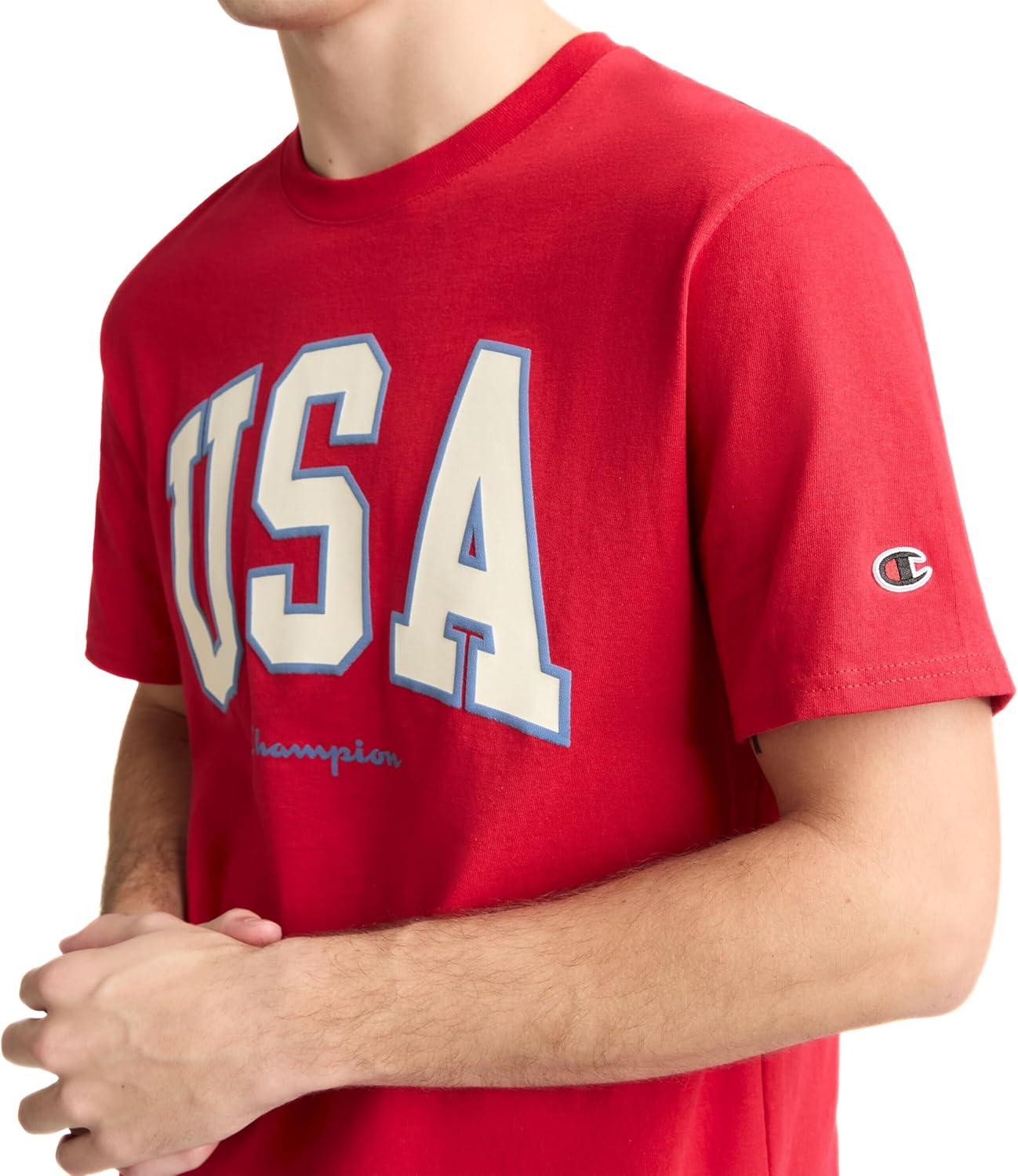 Champion Men's Heritage Short Sleeve Tee, Men’s T-Shirts, Vintage Shirts, Men’s Tee Shirts, Graphics(Spirited Red - Usa Block Logo)