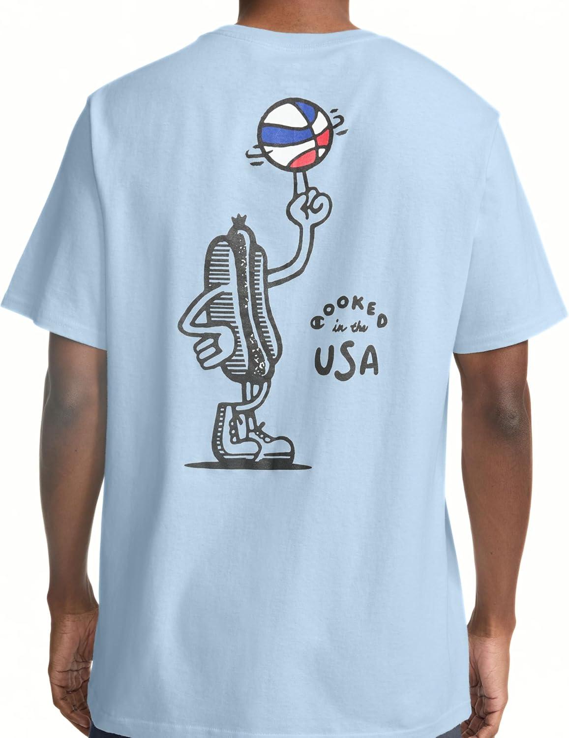 Champion Men’s Heritage Short Sleeve Tee, Men’s T-Shirts, Vintage Shirts, Men’s Tee Shirts, Graphics(Spring Sky Blue – Cooked in the Usa)