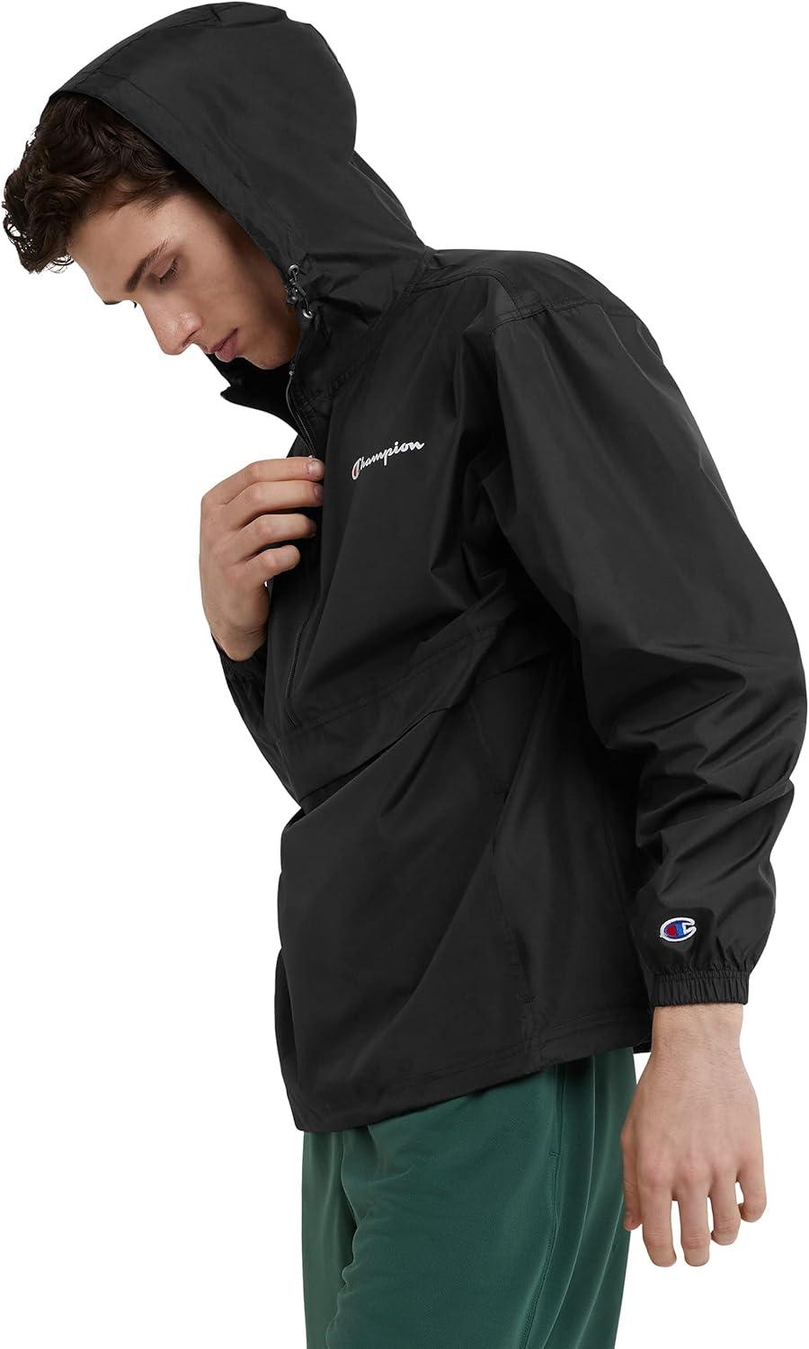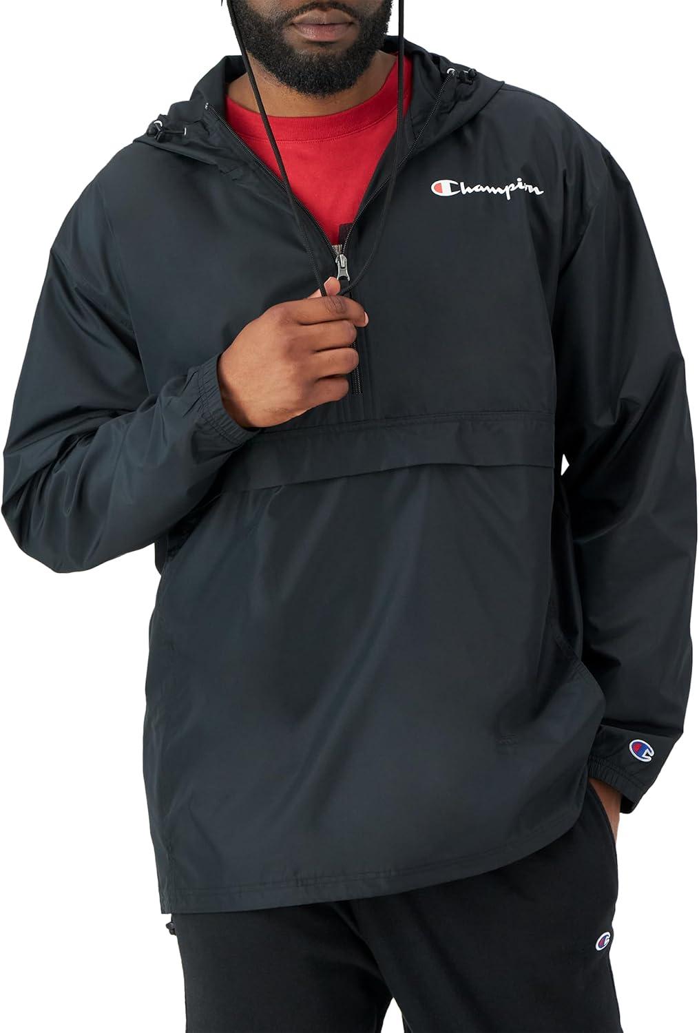 Champion Men's Jacket, Stadium Full-zip Jacket, Wind Resistant, Water Resistant Jacket for Men(Black Small - Small Script Logo)