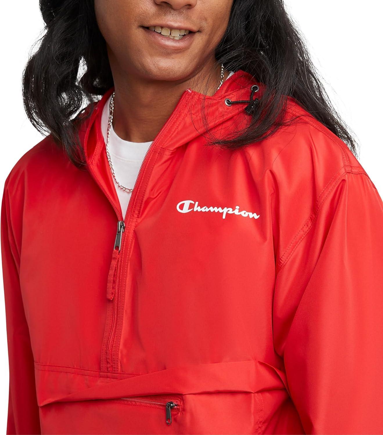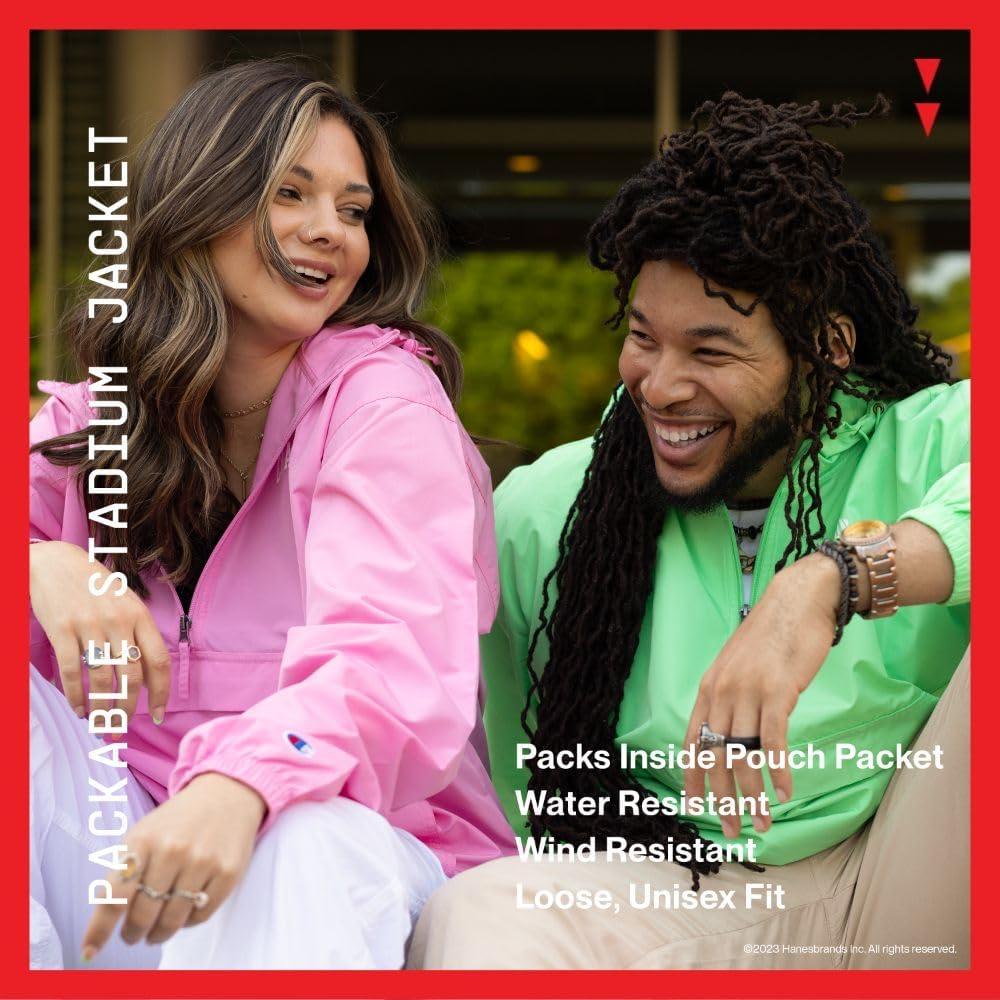 Champion Men’s Jacket, Stadium Full-zip Jacket, Wind Resistant, Water Resistant Jacket for Men(Scarlet Small Script)
