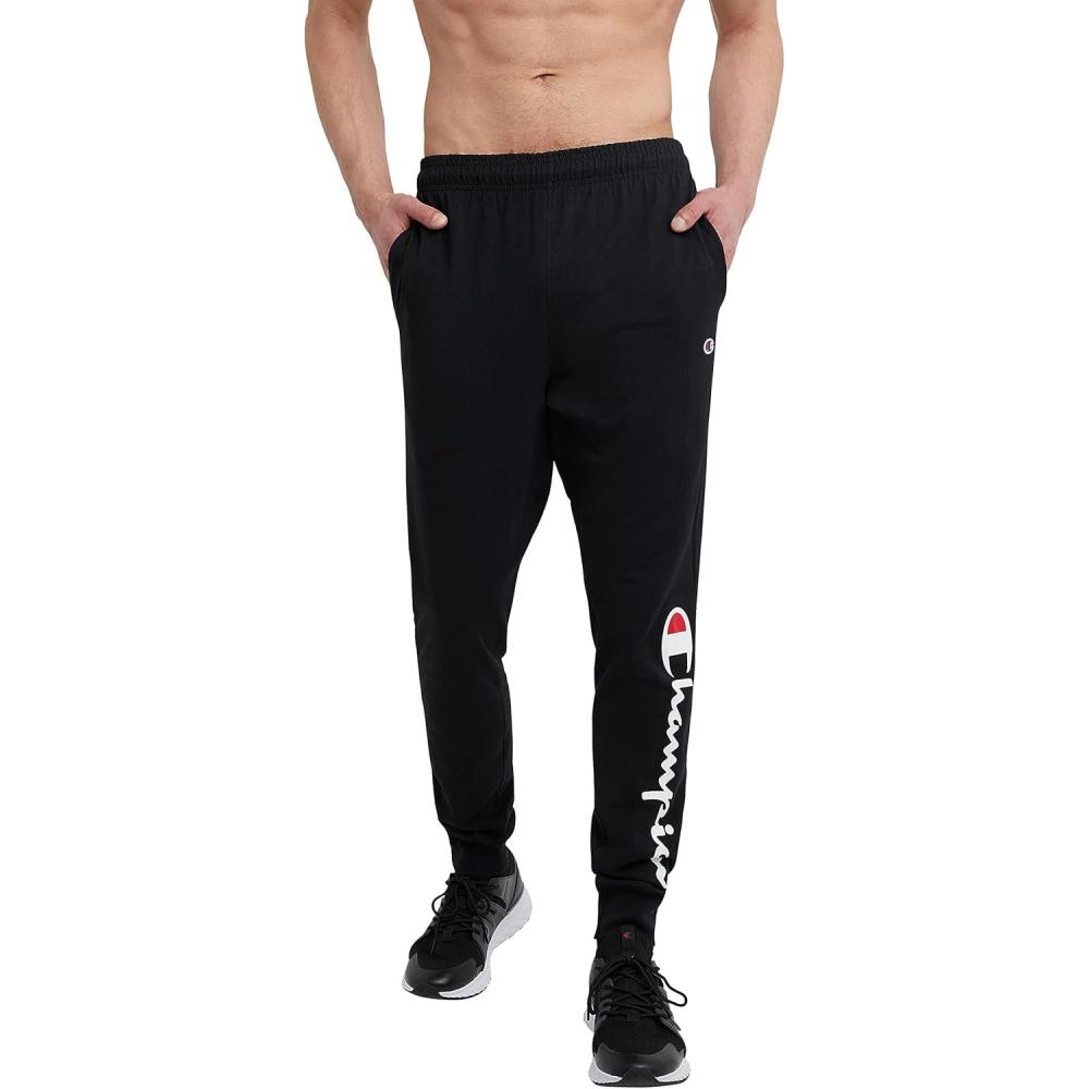Champion Men's Joggers, Everyday Cotton, Lightweight Lounge Knit Pants for Men, 31"(Black - Classic Script Logo)