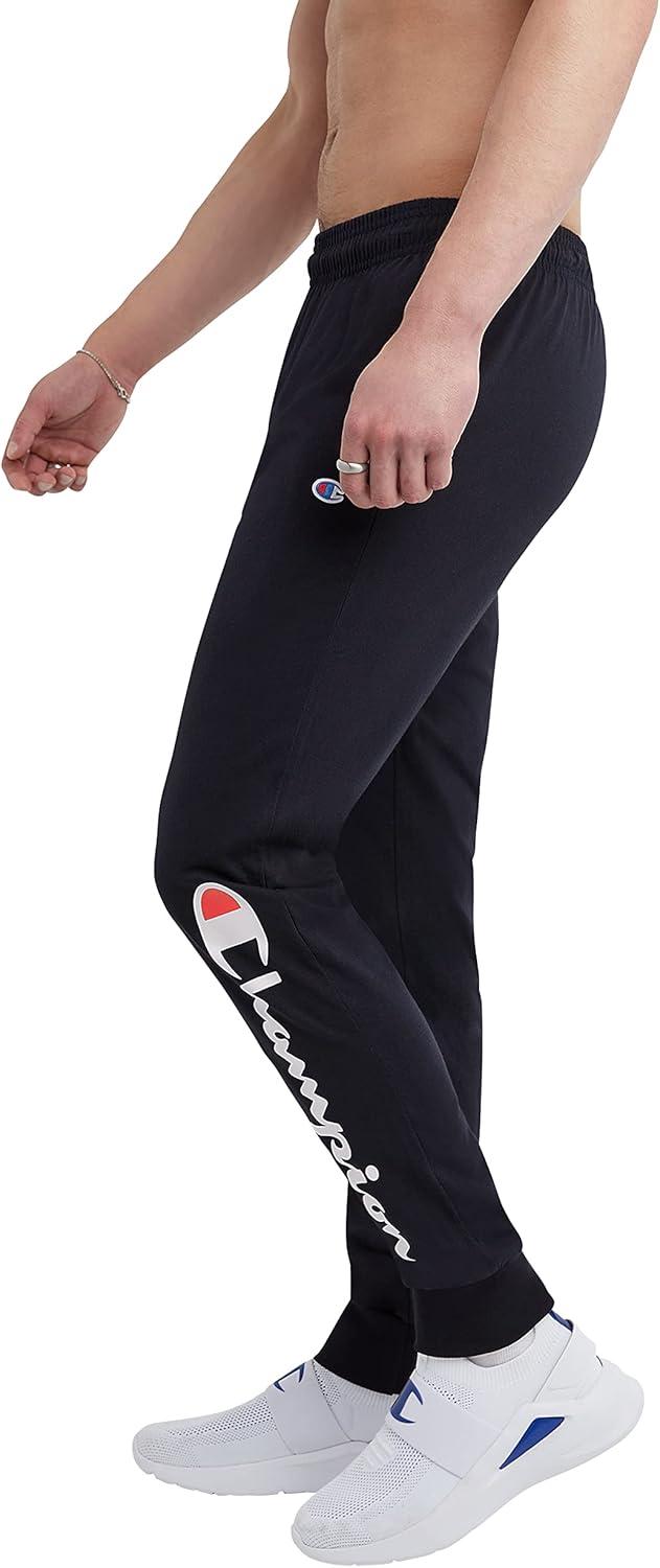 Champion Men’s Joggers, Everyday Cotton, Lightweight Lounge Knit Pants for Men, 31″(Navy – C Logo)