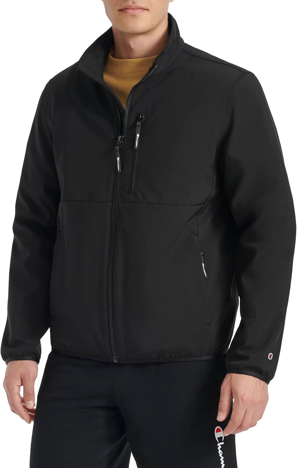 Champion mens Lightweight Active Soft Shell Jacket With Stand Collar(Black)