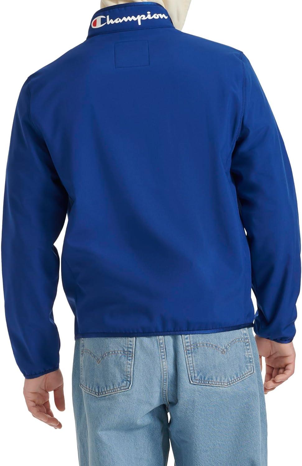 Embrace effortless sophistication with the Champion lightweight stand collar sport shell jacket, featuring a sleek chest zipper pocket and the iconic Champion logo positioned at the back of the collar. This jacket blends modern functionality with a touch of athletic elegance, perfect for staying stylishly prepared on the go.