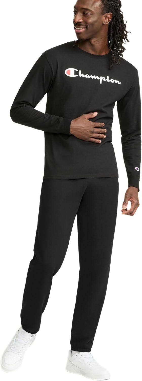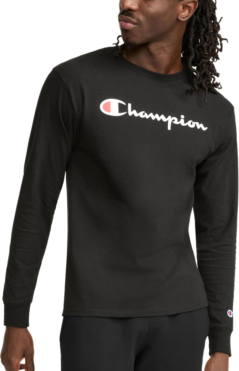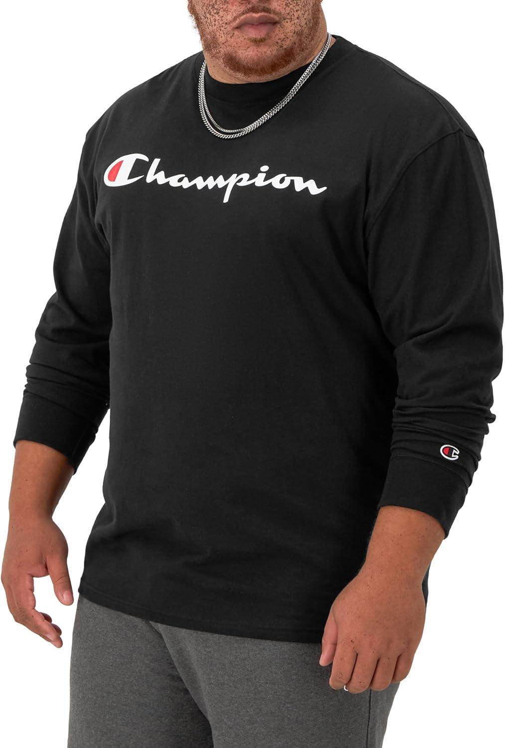 Champion Men's Long Sleeve T-shirt, Classic T-shirt for Men (Reg. Or Big & Tall)(Black - Classic Script Logo)