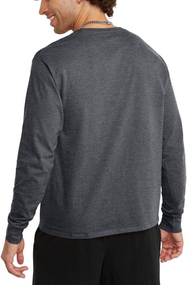 A STAPLE FOR ALL SEASONS. A good-to-go long-sleeve shirt is an ideal addition to your year-round wardrobe. Rock this Big & Tall men's long-sleeve T-shirt solo on a breezy night or layer it under your favorite Champion jackets and hoodies for styled warmth. This versatile tee has a soft, worn-in texture you'll love and the cut is made for a Big & Tall frame. The iconic C patch on the chest and sleeve gives that Champion look you trust. From red to black options, there's a look to match your every vibe.