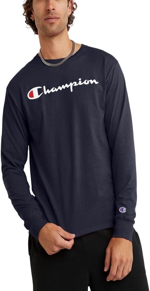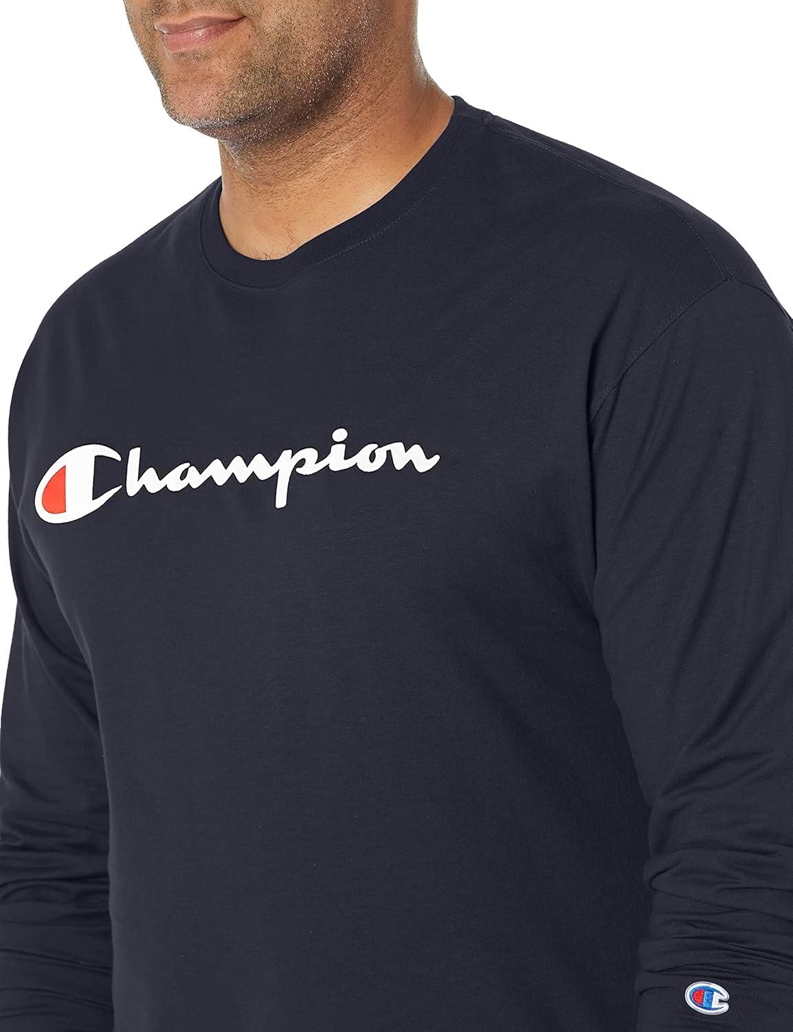 Champion Men's Long Sleeve T-shirt, Classic T-shirt for Men (Reg. Or Big & Tall)(Navy - Classic Script Logo)