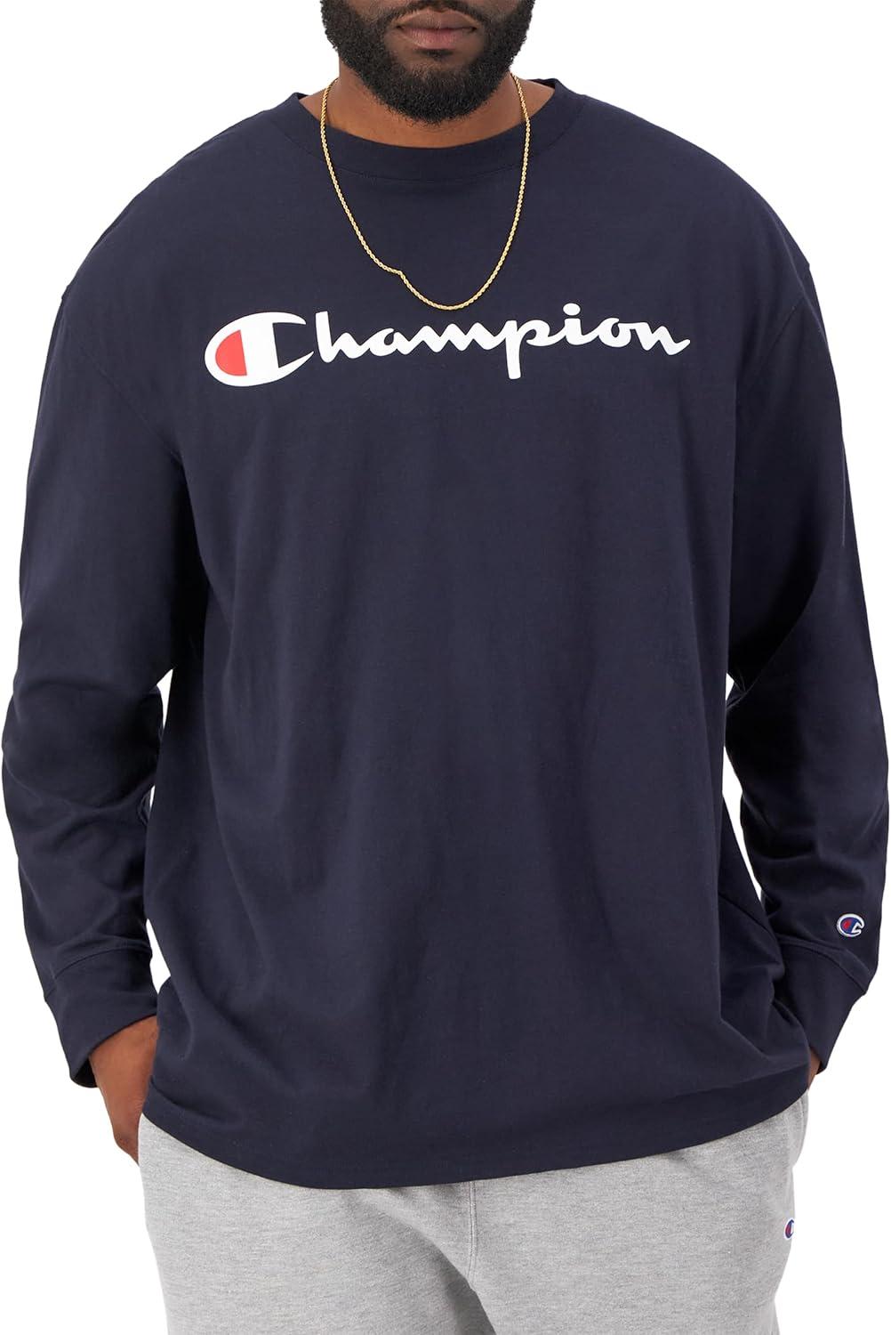 Champion Men’s Long Sleeve T-shirt, Classic T-shirt for Men (Reg. Or Big & Tall)(Navy)