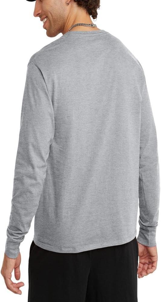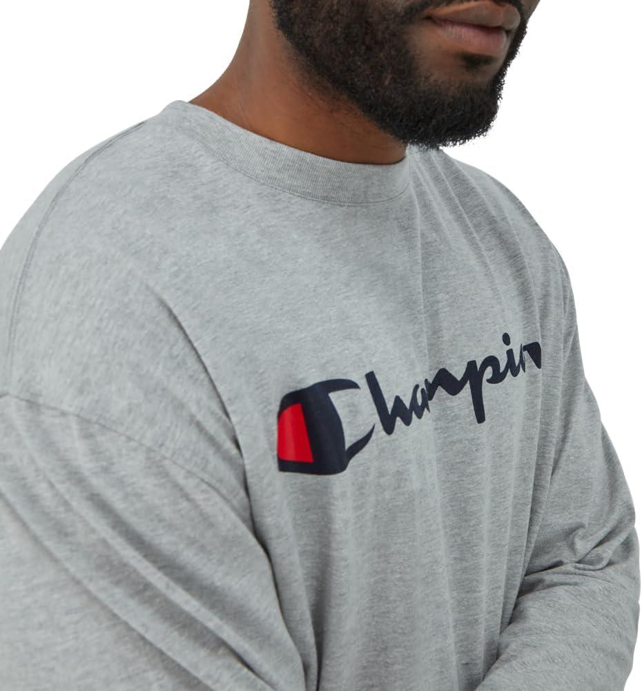Champion Men's Long Sleeve T-shirt, Classic T-shirt for Men (Reg. Or Big & Tall)(Oxford Gray Script)