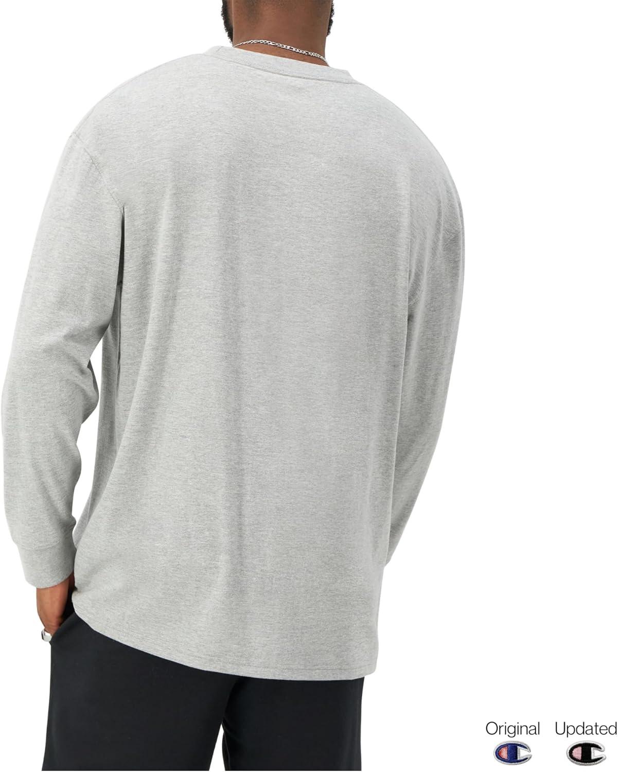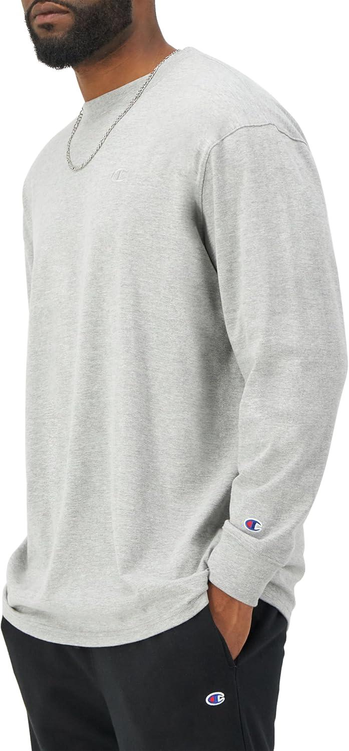 Champion Men's Long Sleeve T-shirt, Classic T-shirt for Men (Reg. Or Big & Tall)(Oxford Gray)